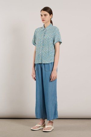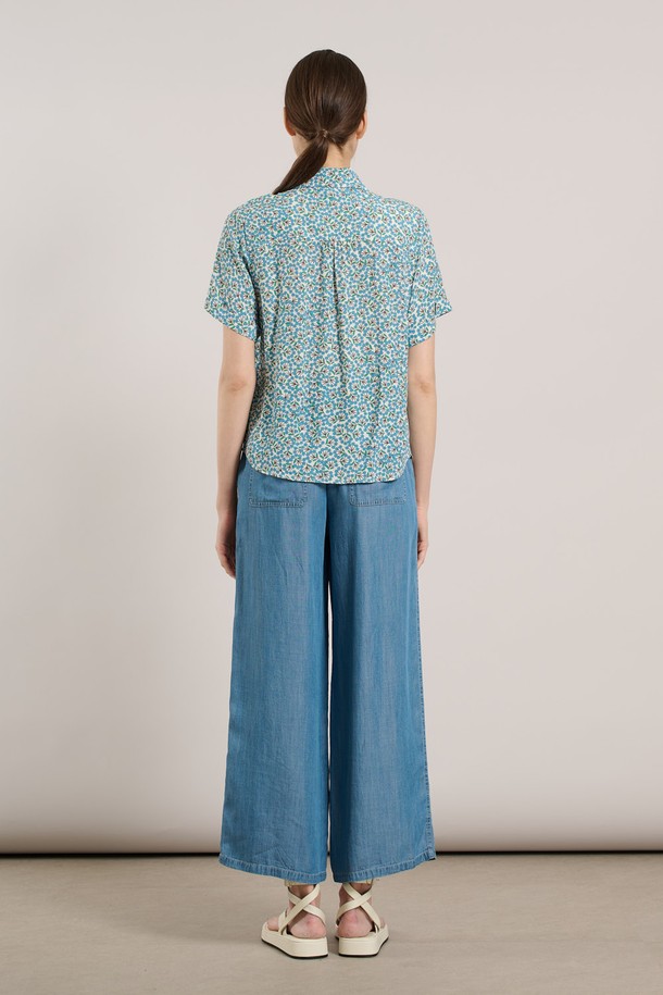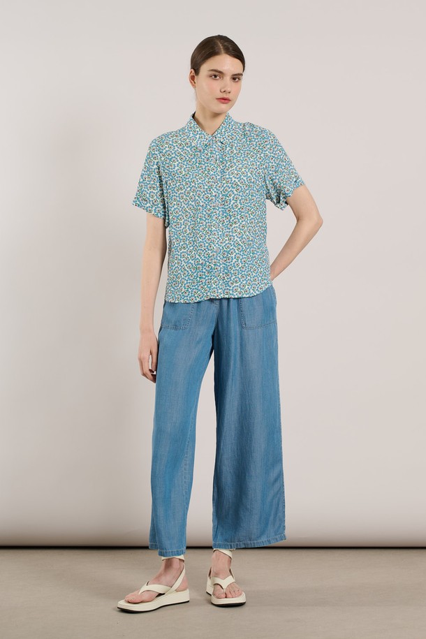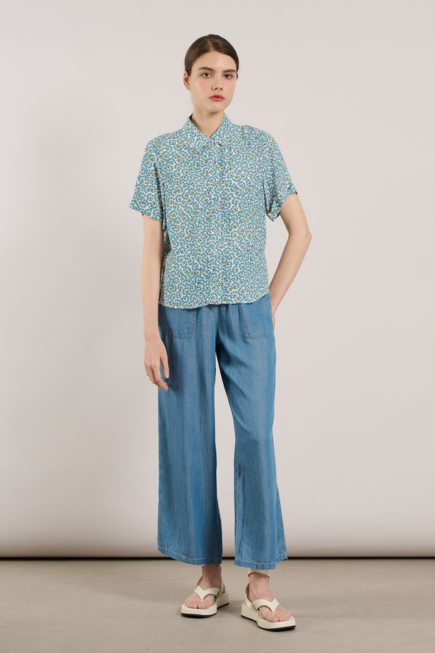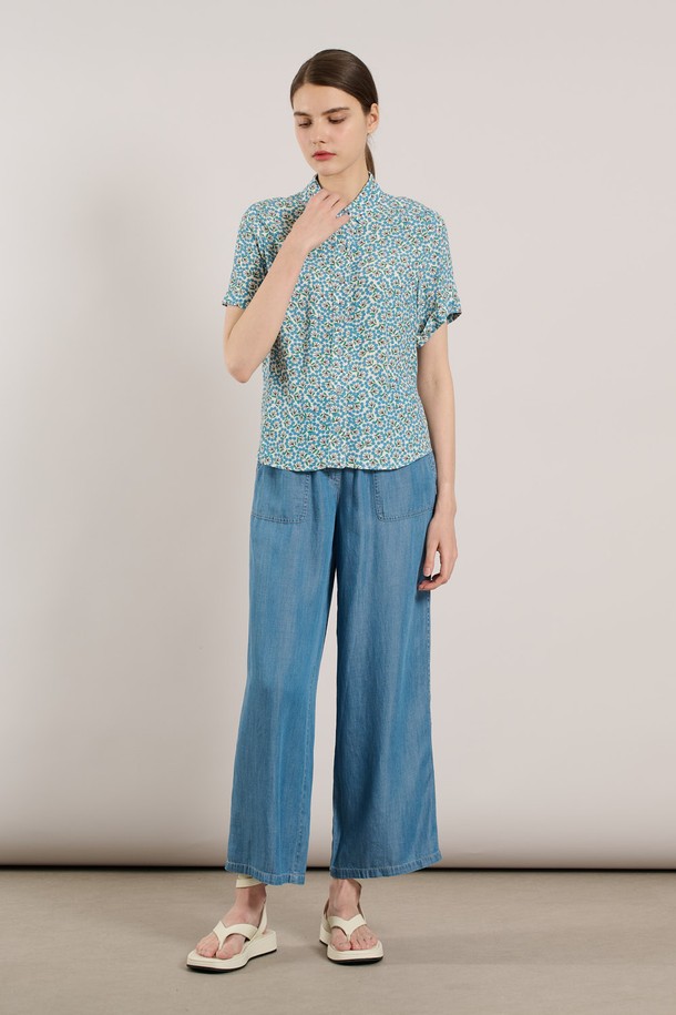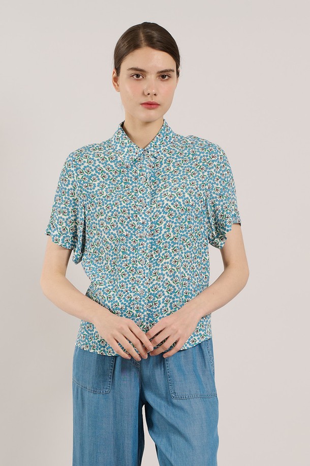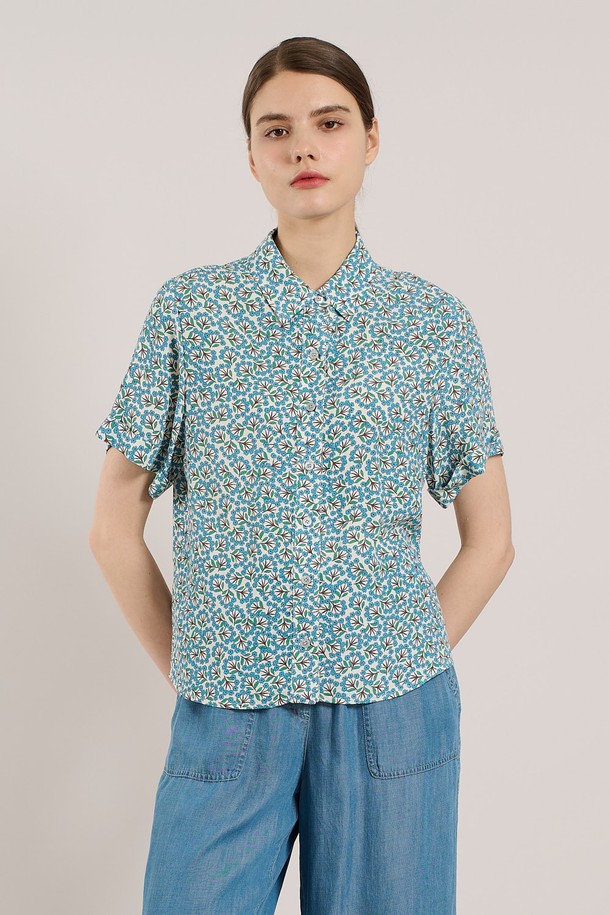 [25SU] 플라워 프린트 블라우스 - M BLUE A5M4B48553