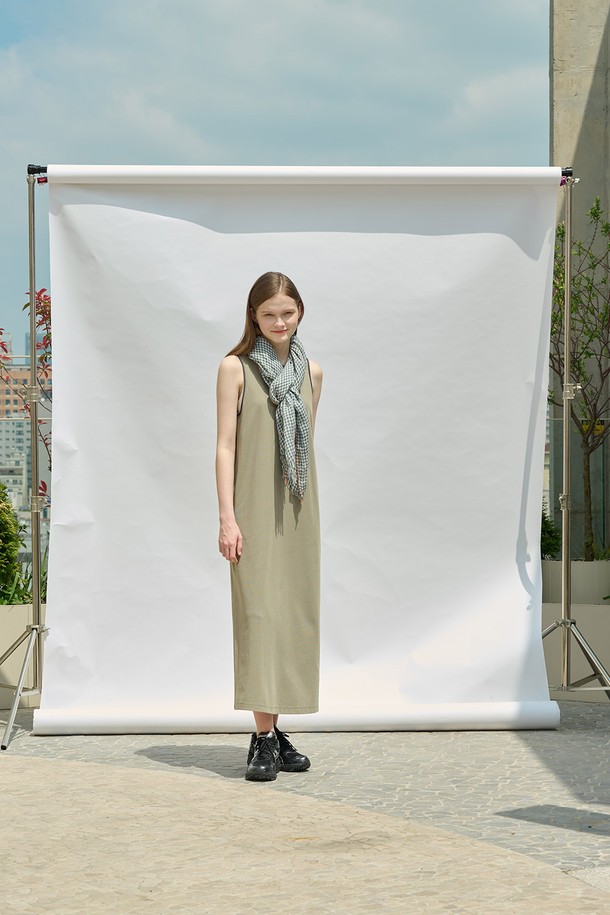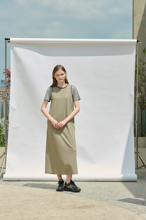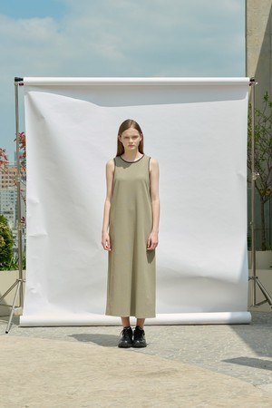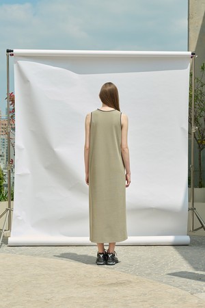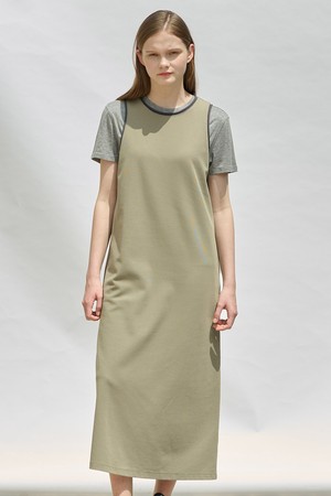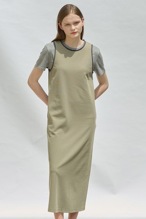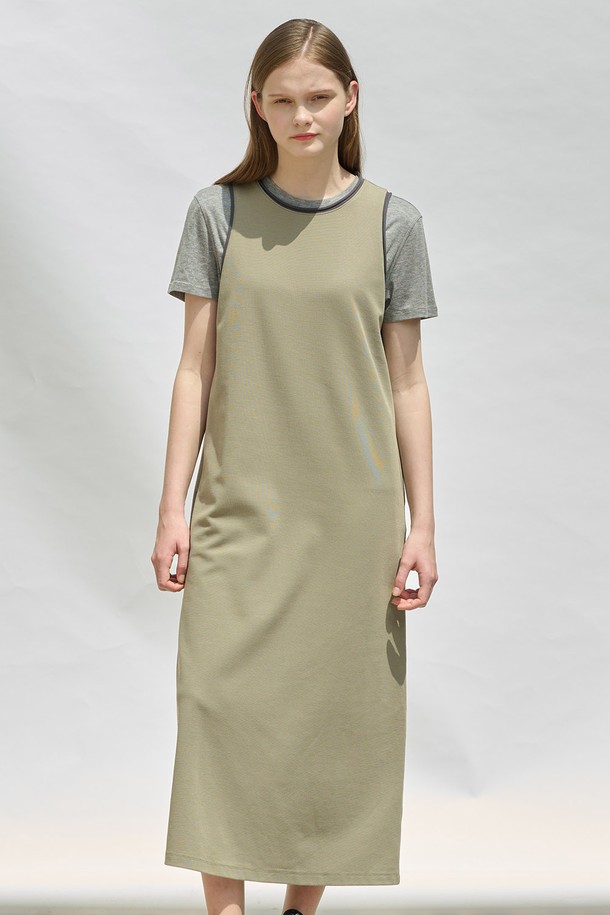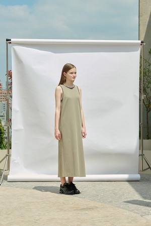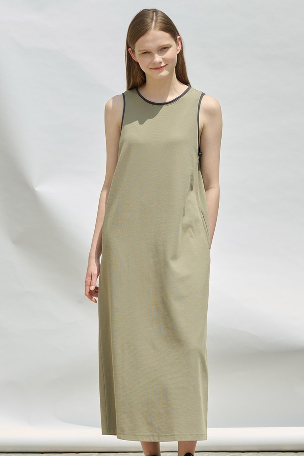 [25SU] 슬리브리스 배색 롱 원피스 - KHAKI A5M4I69045