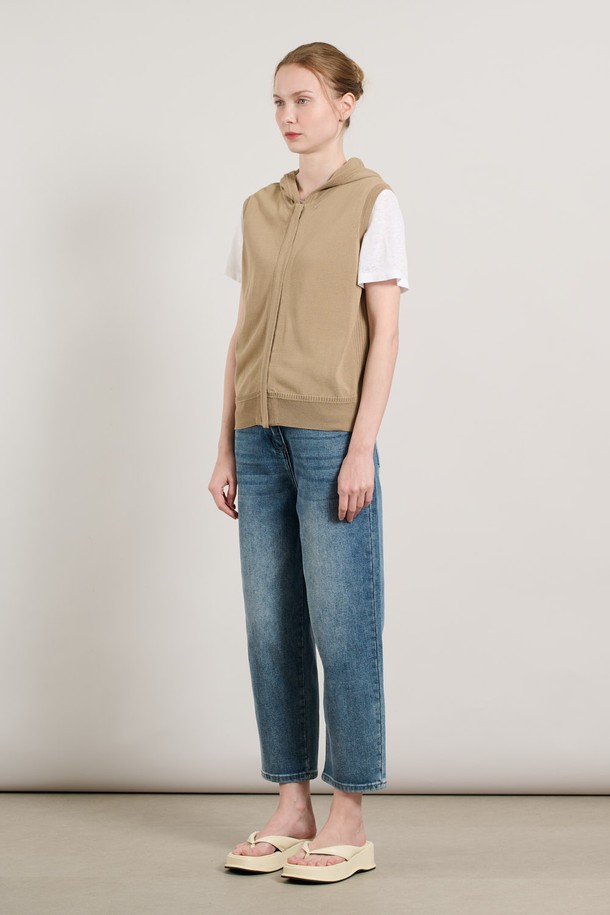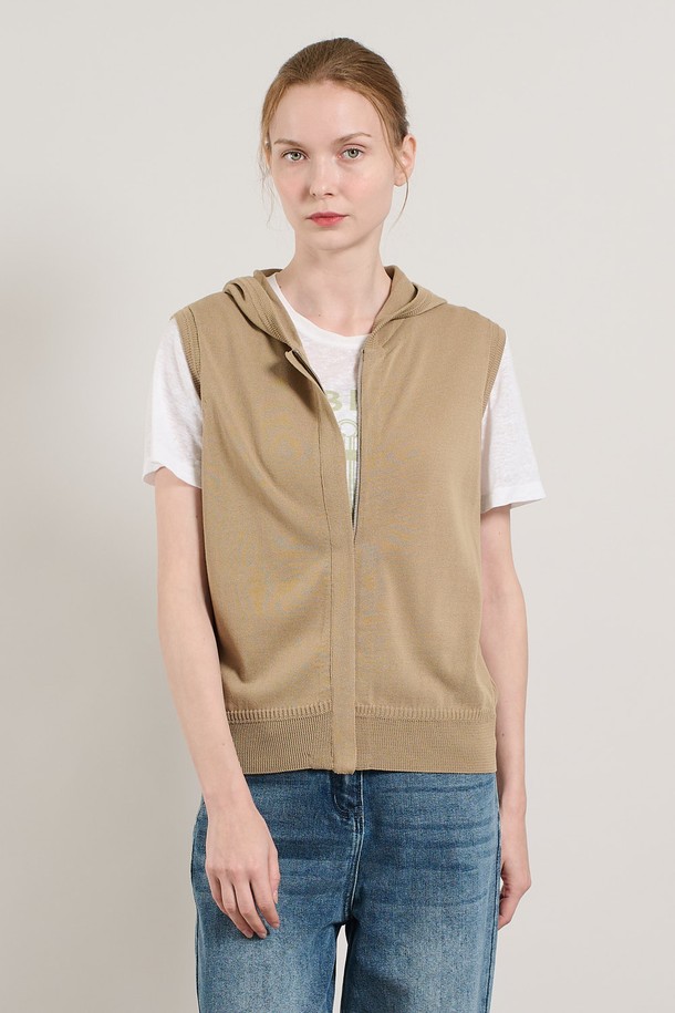 [25SU] 후드 집업 니트 베스트 - M BEIGE A5M3K50172