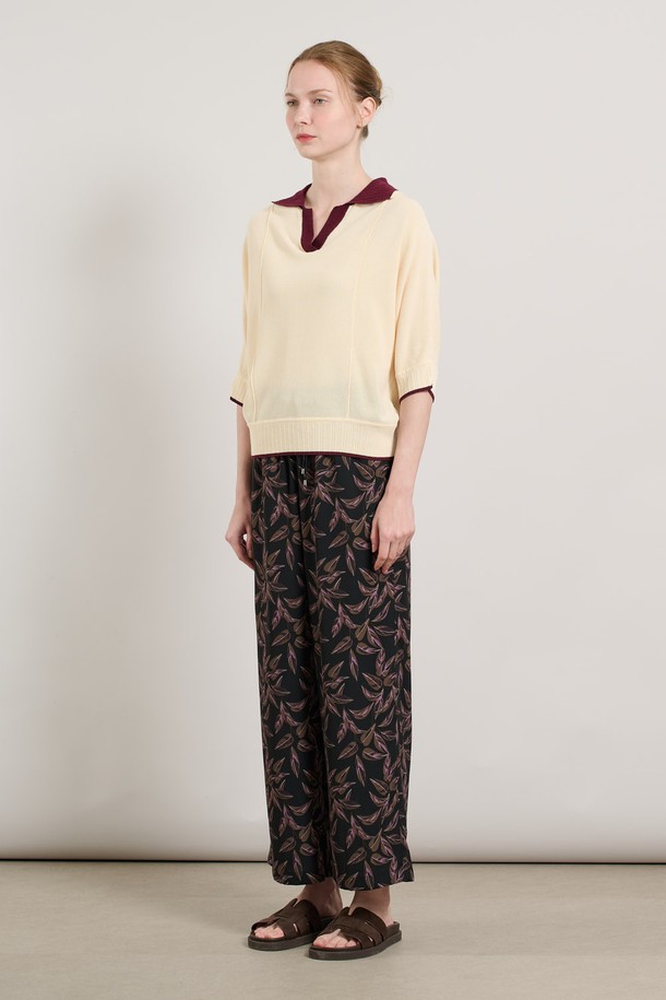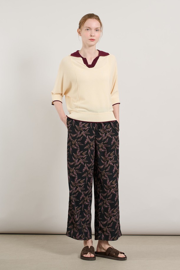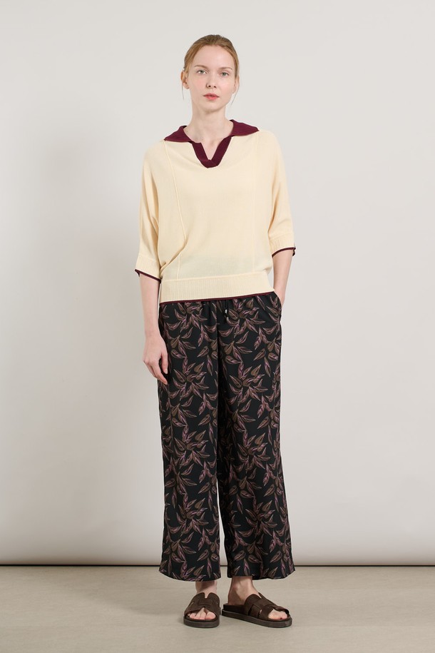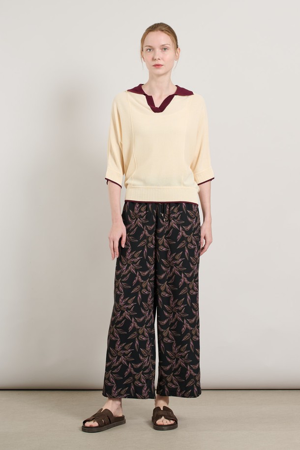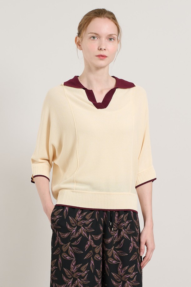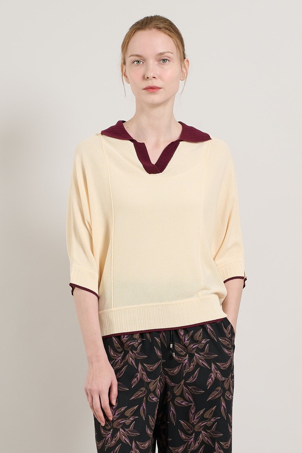 [25SU] 돌먼슬리브 배색카라 니트 풀오버 - LIGHT BEIGE A5M4K33571