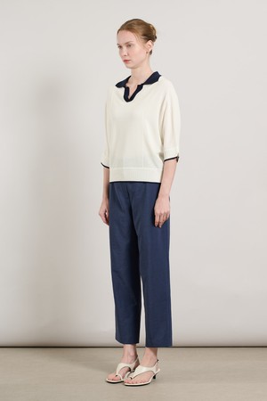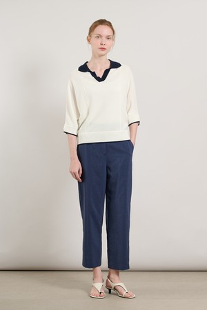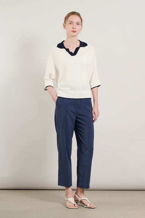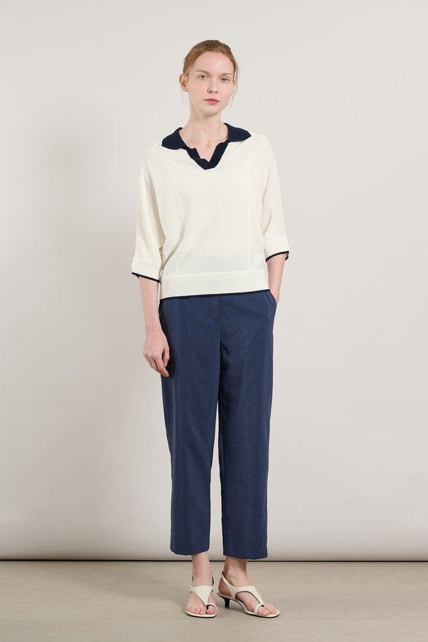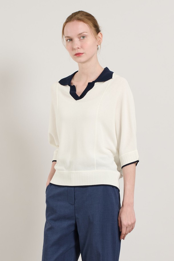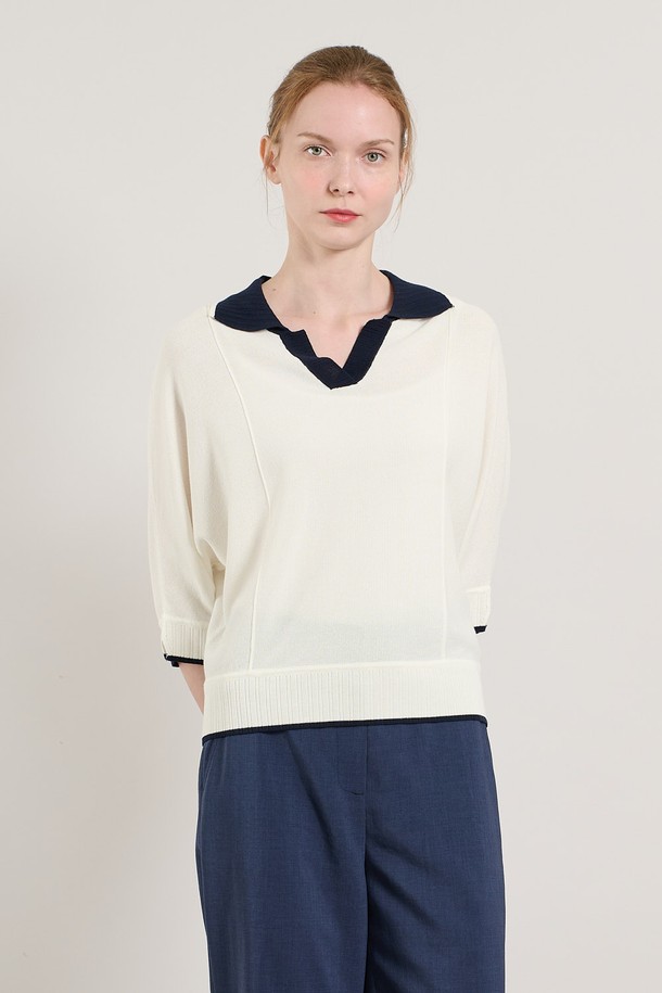 [25SU] 돌먼슬리브 배색카라 니트 풀오버 - IVORY A5M4K33513