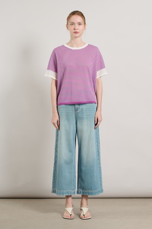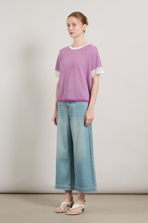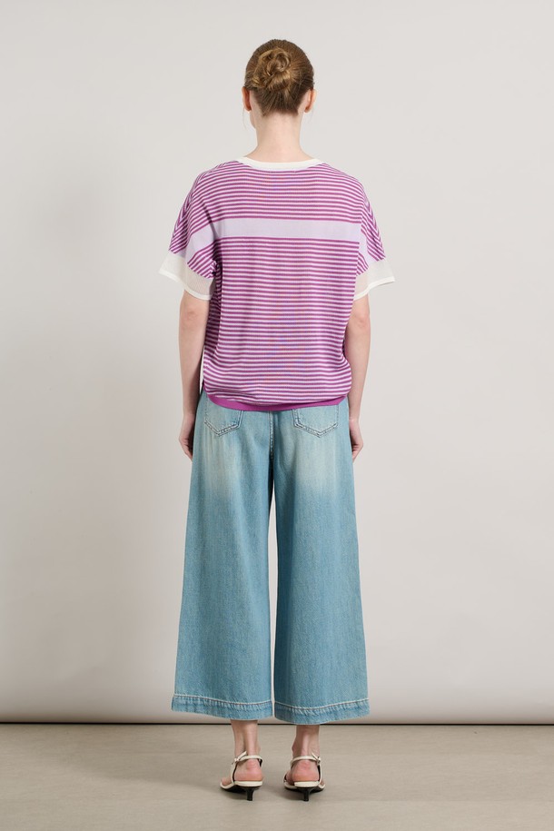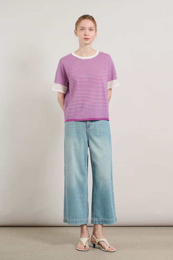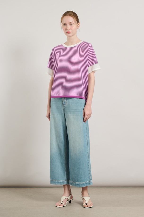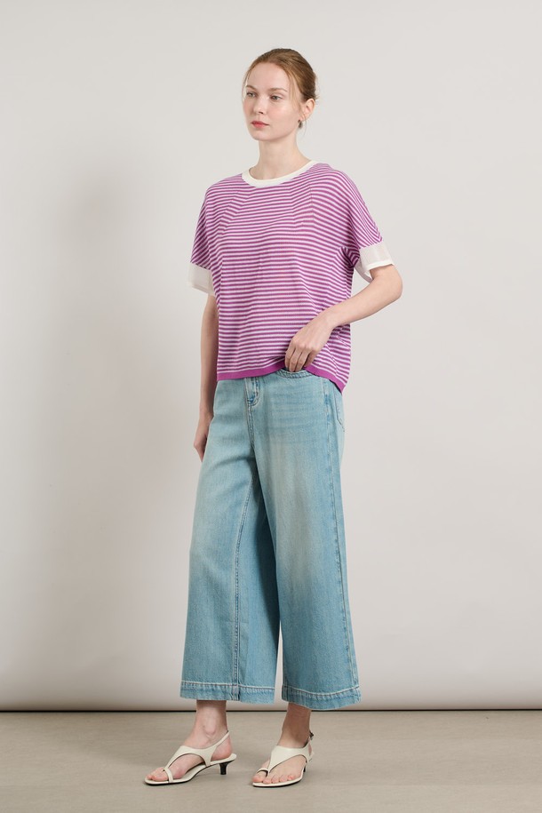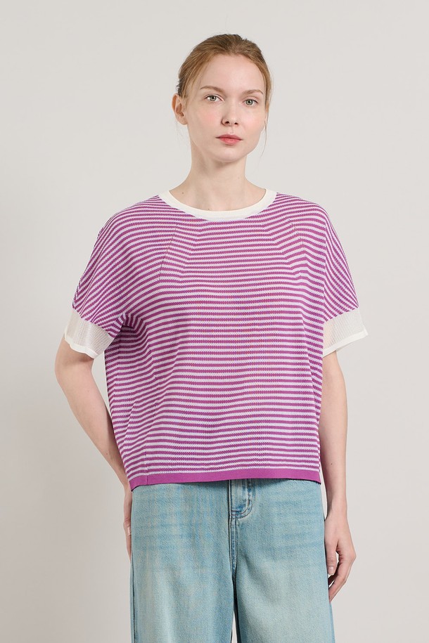 [25SU] 오버핏 스트라이프 니트 풀오버 - PURPLE A5M5K34163