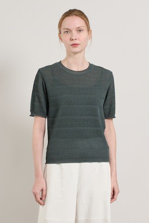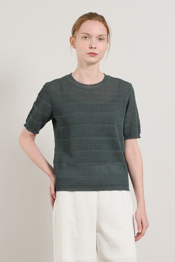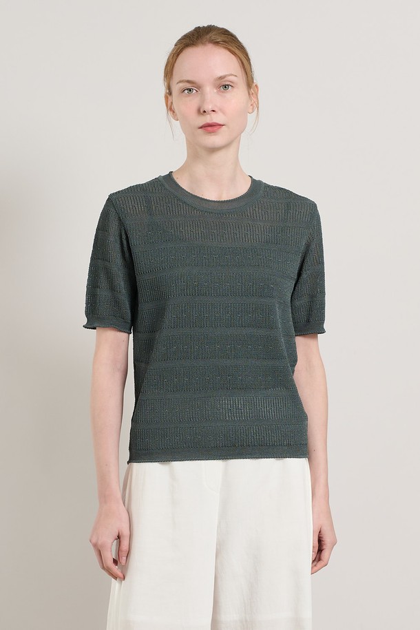 [25SU] 크로셰 스켈럽 니트 풀오버 - TURQUOISE A5M5K34349