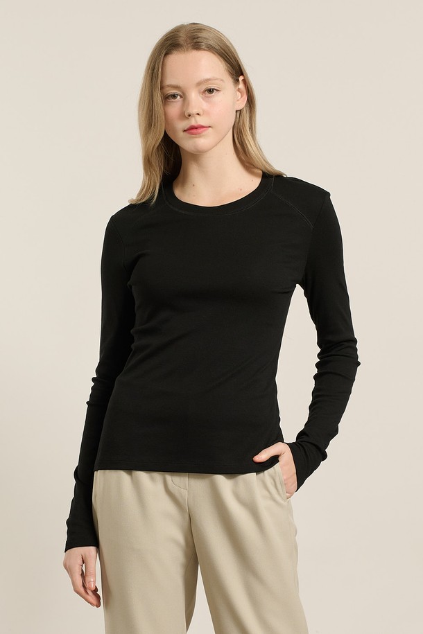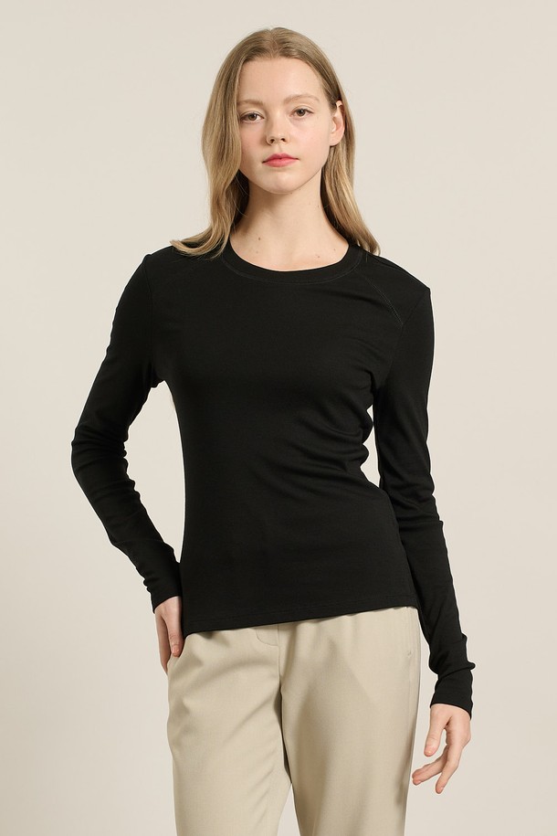 [25FA] 라운드 넥 긴팔 져지 - BLACK A5F8X42199
