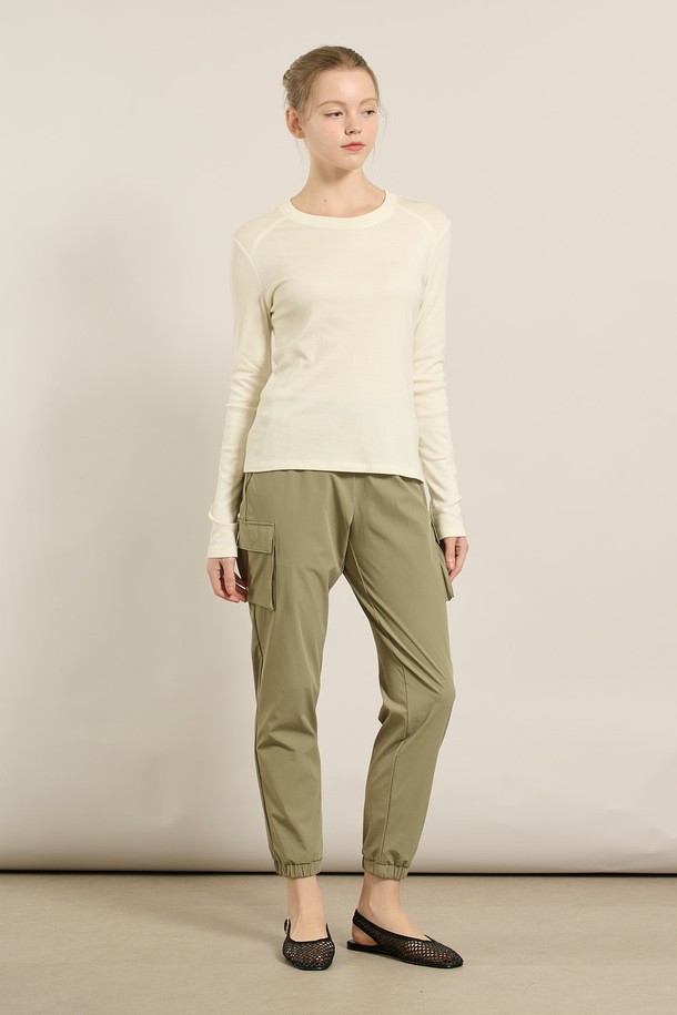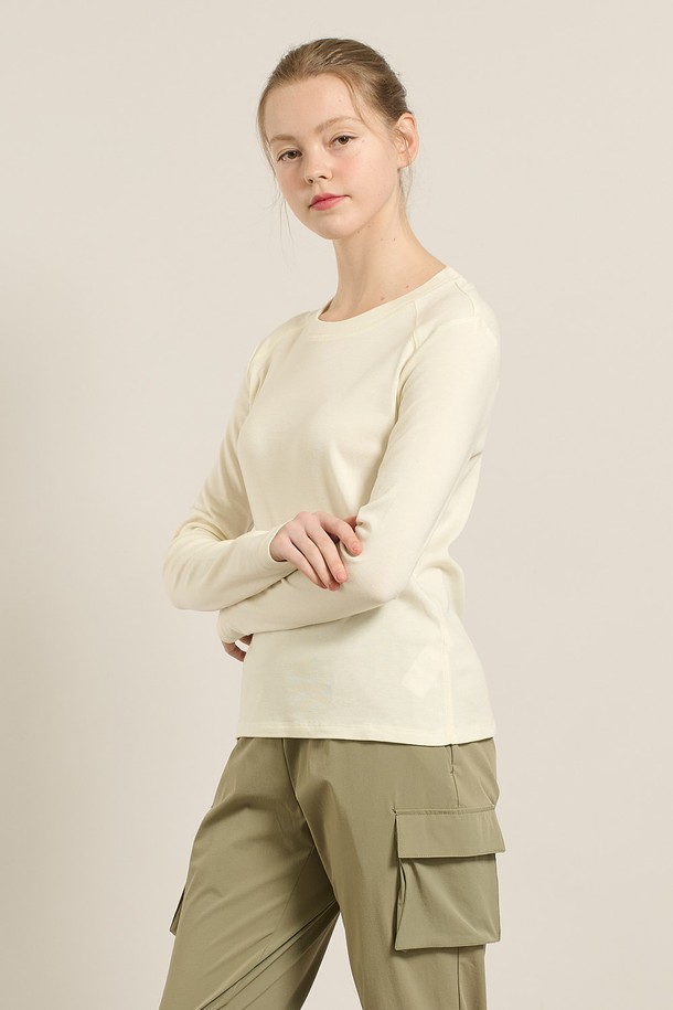 [25FA] 라운드 넥 긴팔 져지 - IVORY A5F8X42113