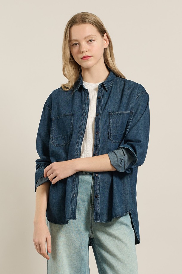 [25FA] 포켓 데님 블라우스 - DARK NAVY A5F8B45656