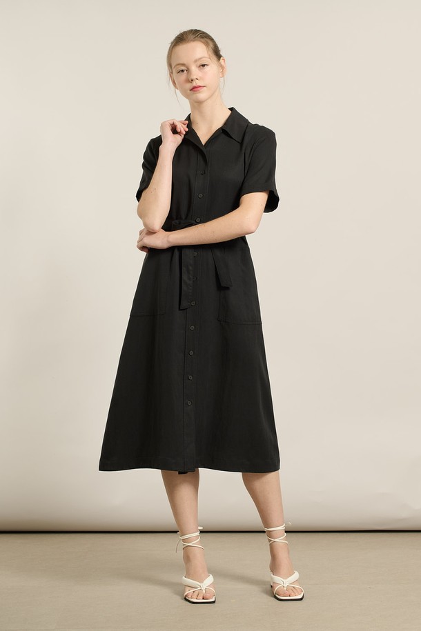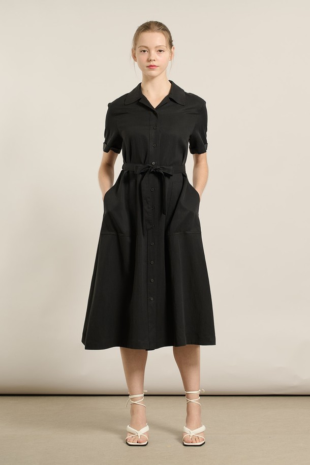 [25FA] 벨티드 아웃포켓 원피스 - BLACK A5F7O66299