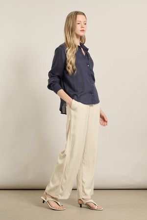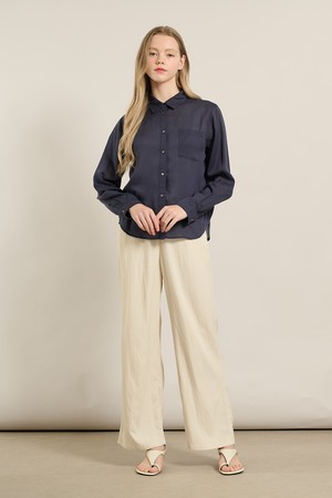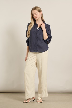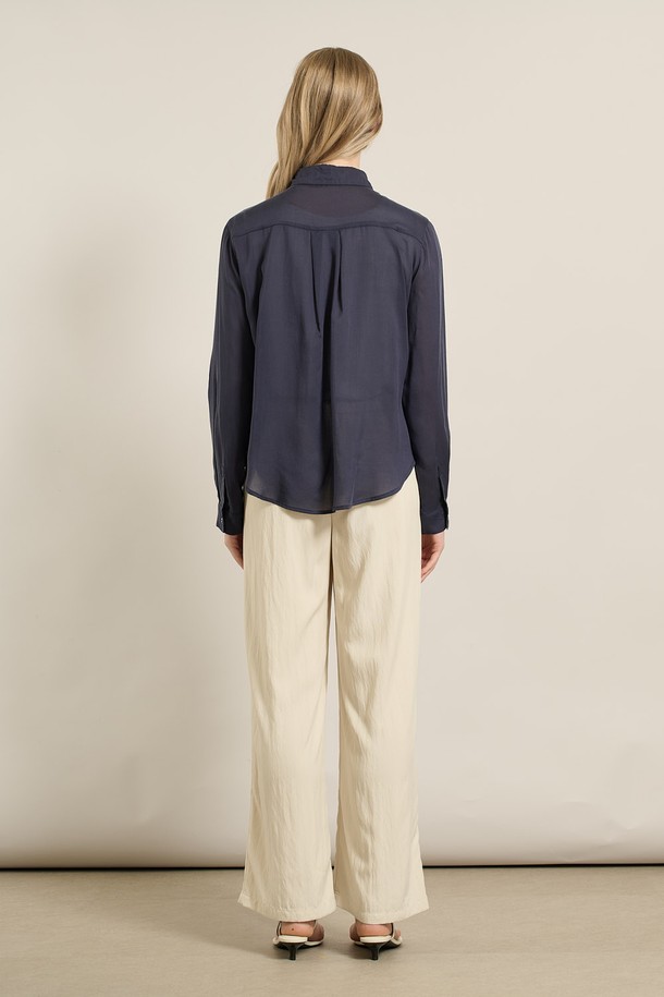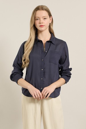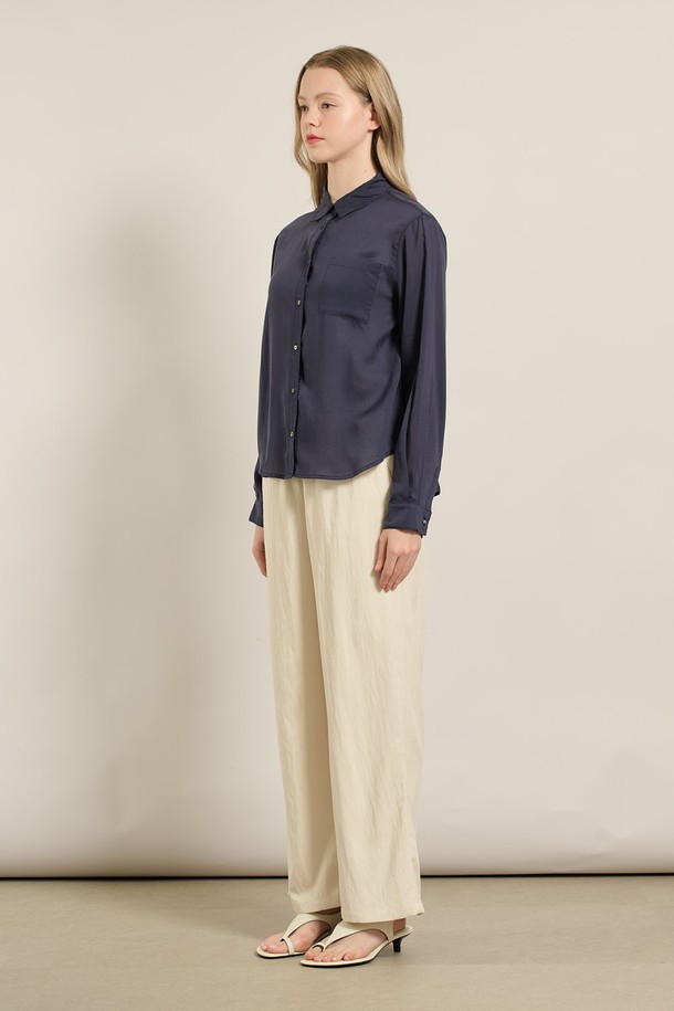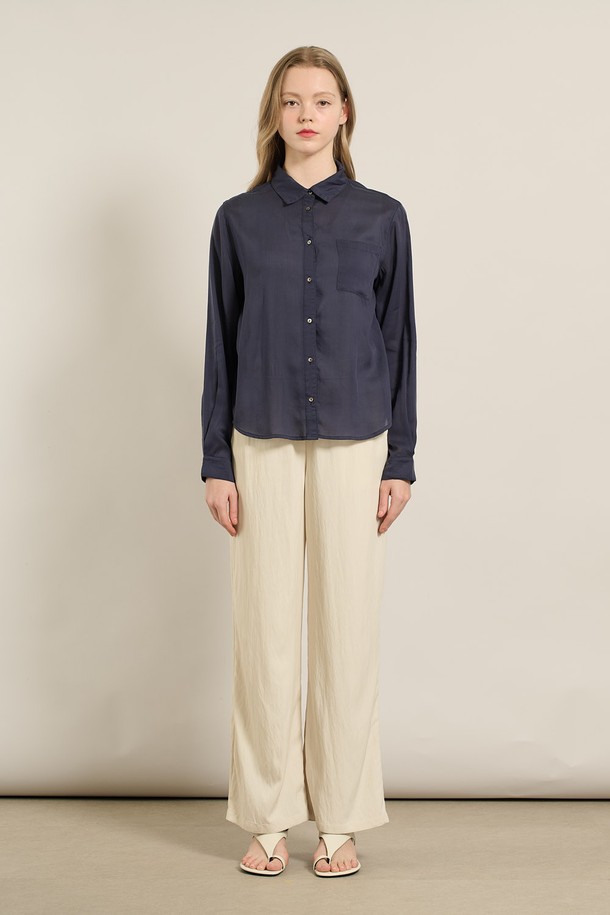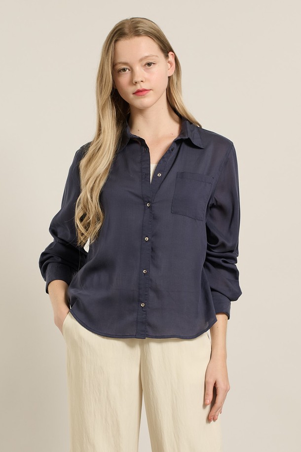 [25FA] 텐셀 베이직 블라우스 - NAVY A5F7B41355