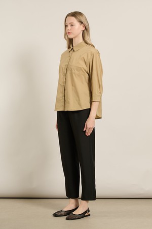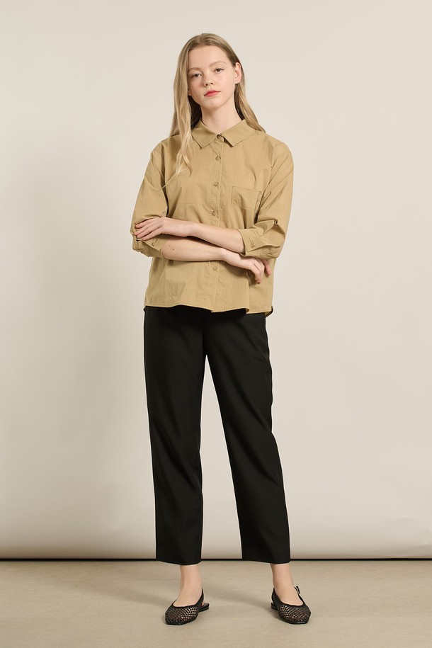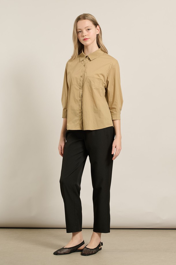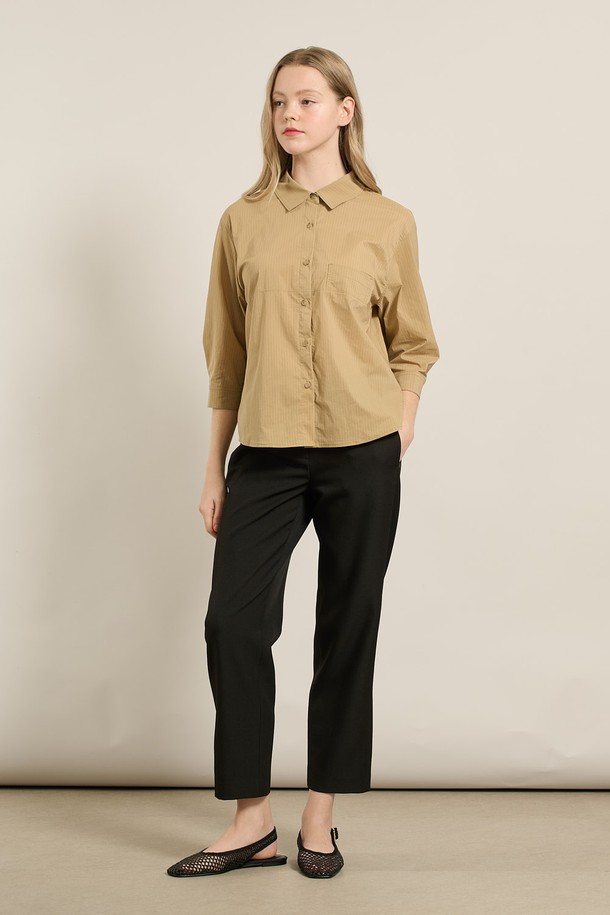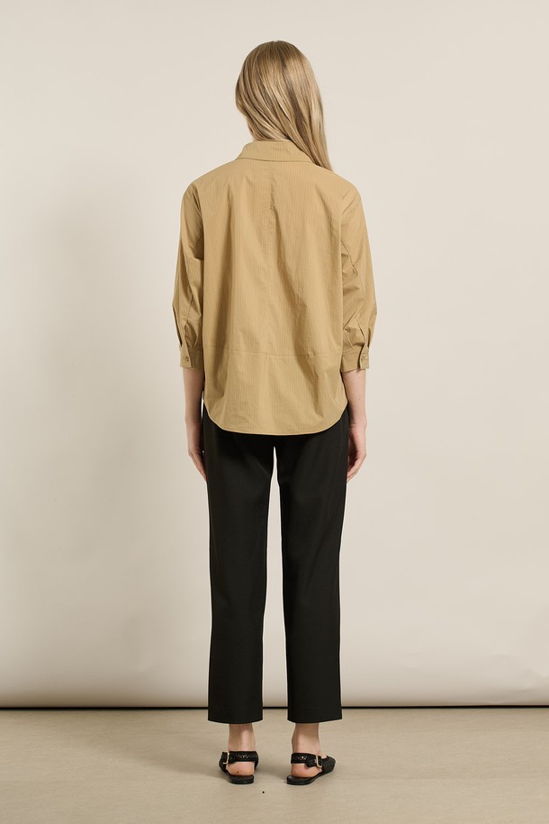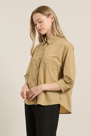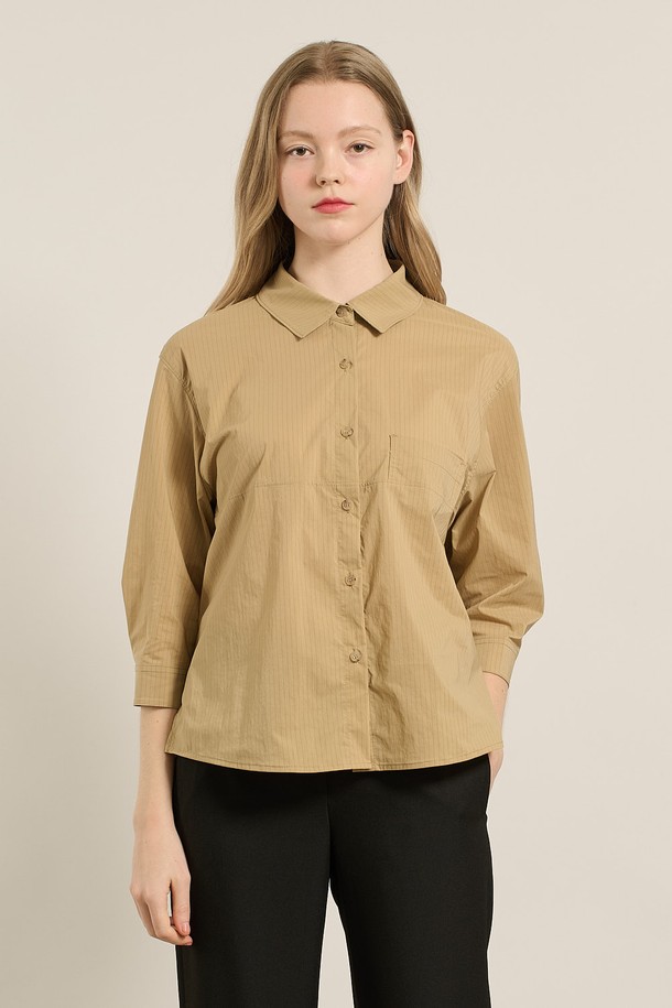 [25FA] 스트라이프 오버핏블라우스 - DARK BEIGE A5F7B40473