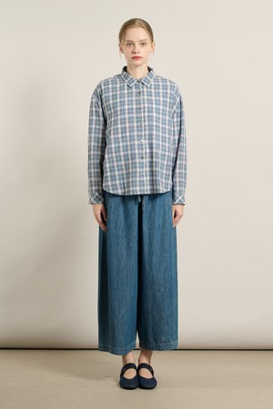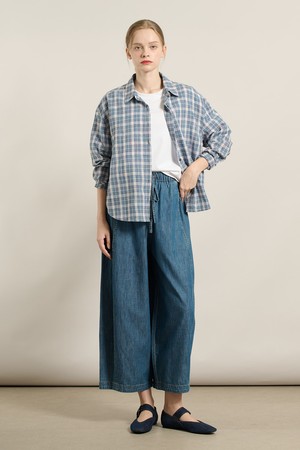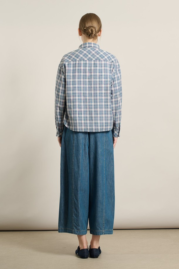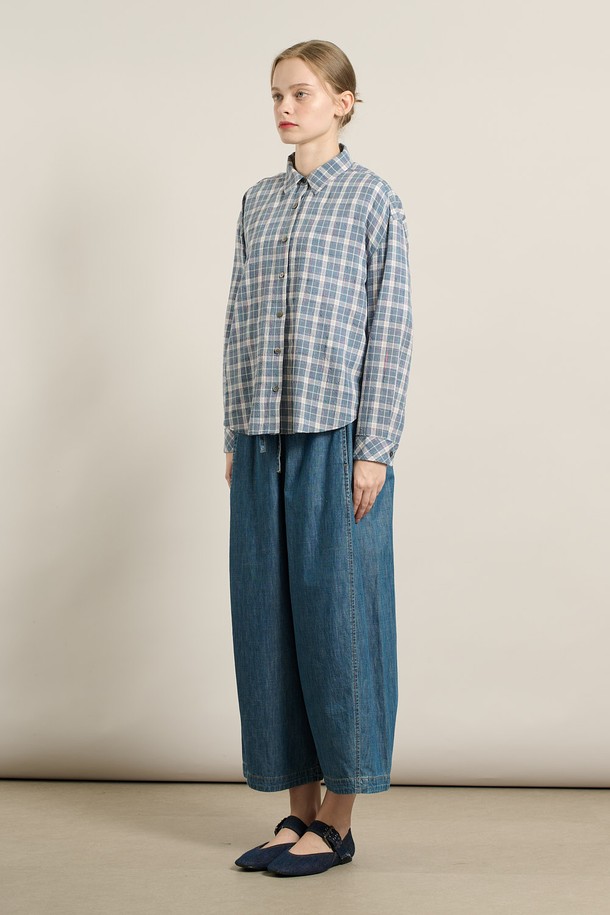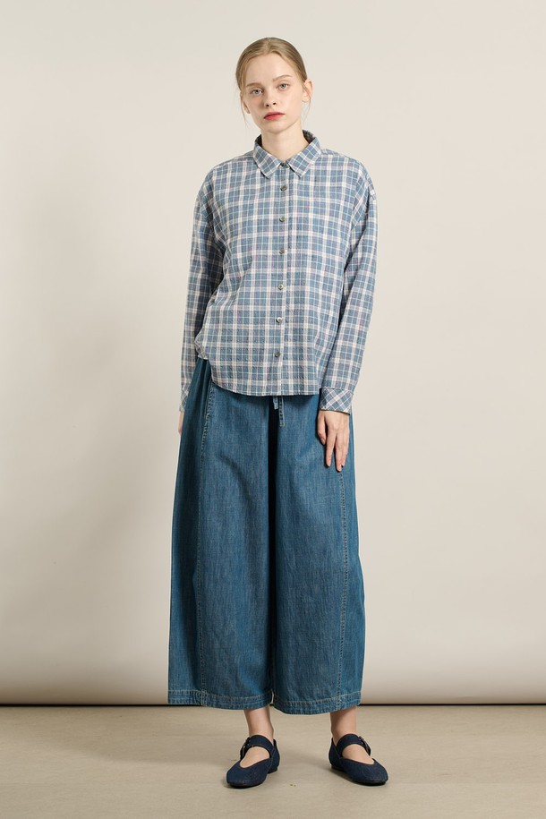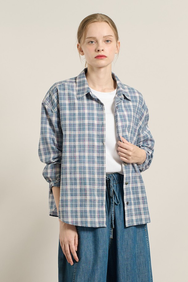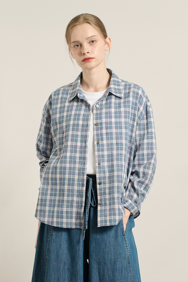[25FA] 컬러 체크 블라우스 - NAVY A5F8B42555