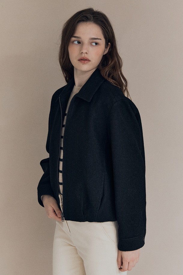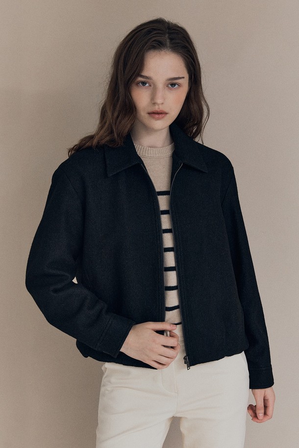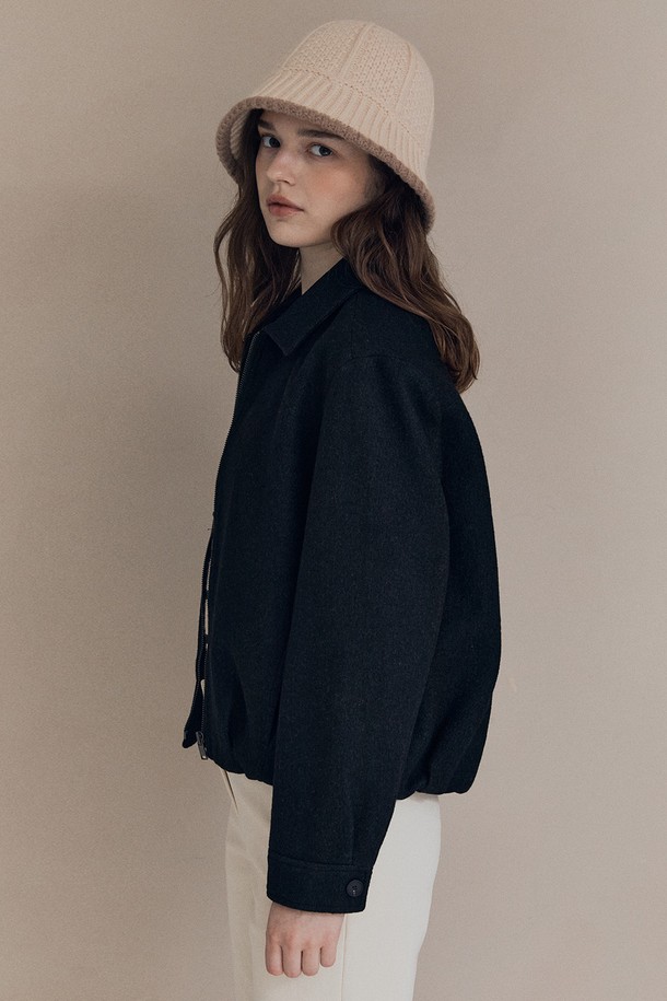 [25WT] 부클 스탠카라 집업점퍼 - BLACK A5W9R10299