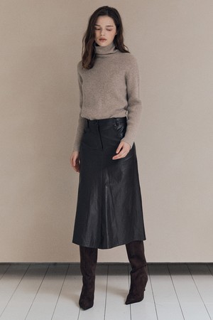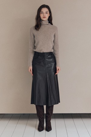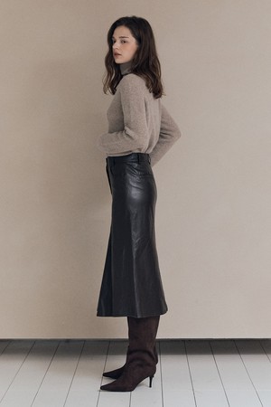 [25WT] 페이크 레더 롱 스커트 - DARK BROWN A5W9S20575