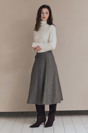[25WT] 헤링본 플레어 스커트 - BROWN A5WAS21374