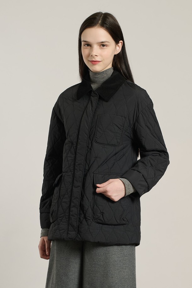 [25WT] 코듀로이 카라 퀼팅 점퍼 - DARK NAVY A5W9R10956