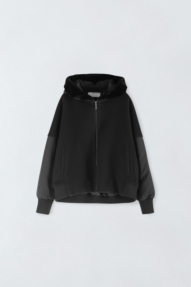 알파카 블랙 배색 구스다운 점퍼 E6HW001