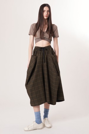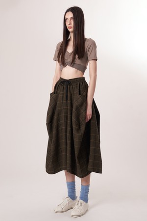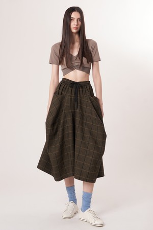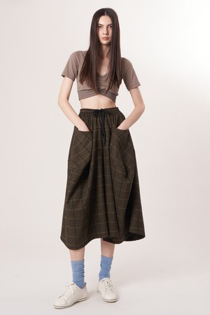AW52PT34 윈터체크 테크플레어 팬츠_다크브라운