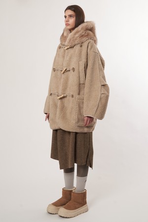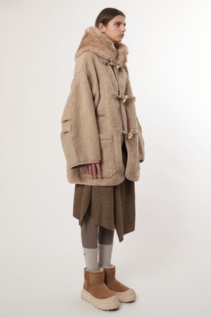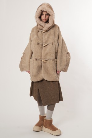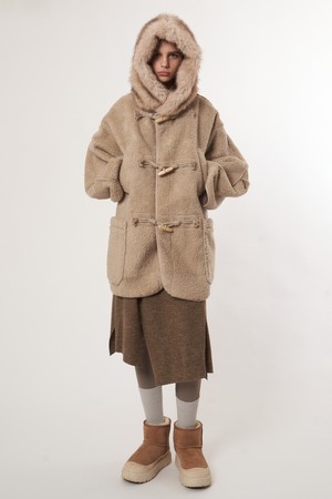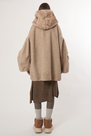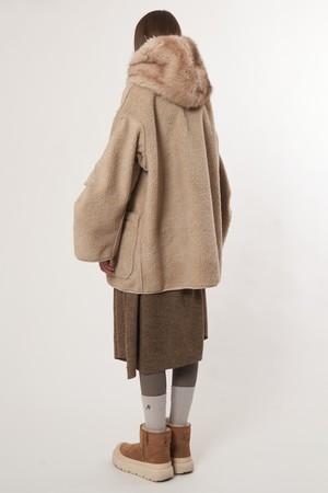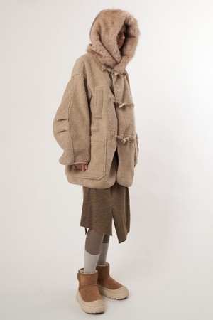 AW52OT02_페이크 라쿤 후드 아우터_베이지
