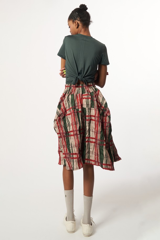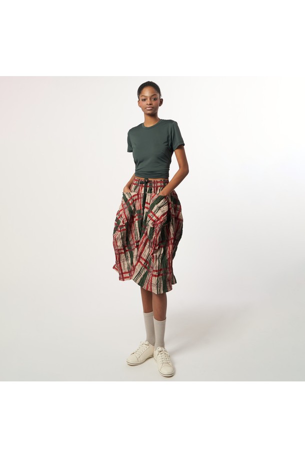 AW61PT07_크링클 체크 테크플레어 팬츠_딥그린