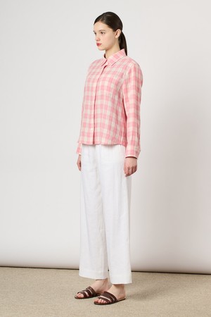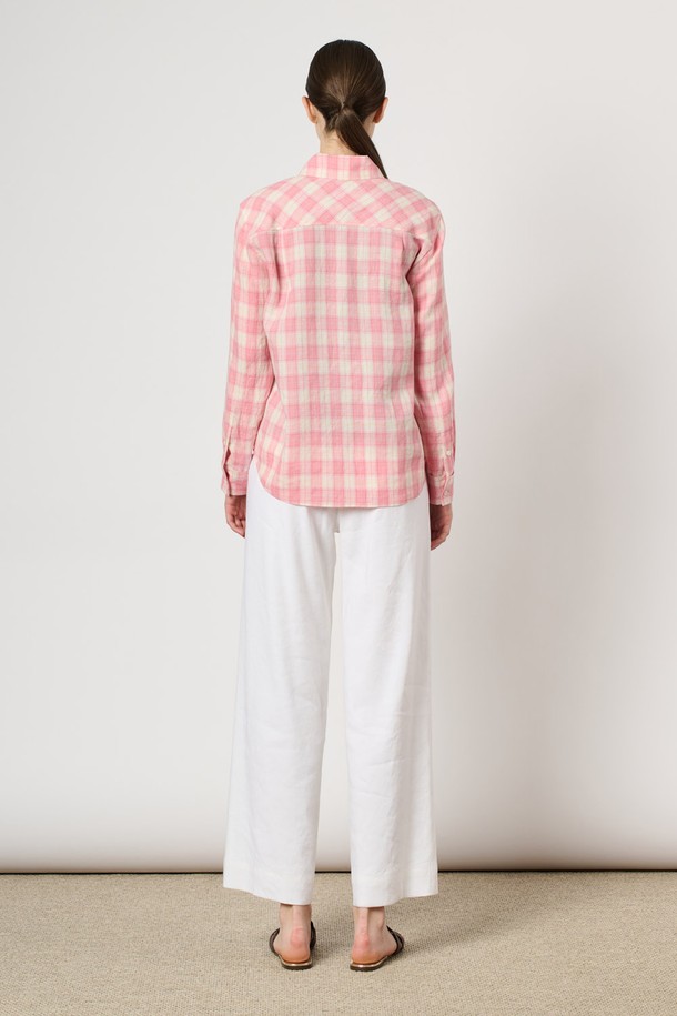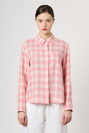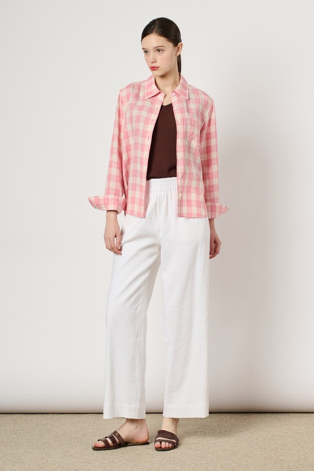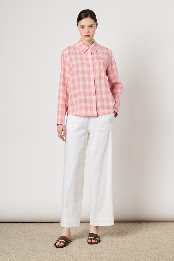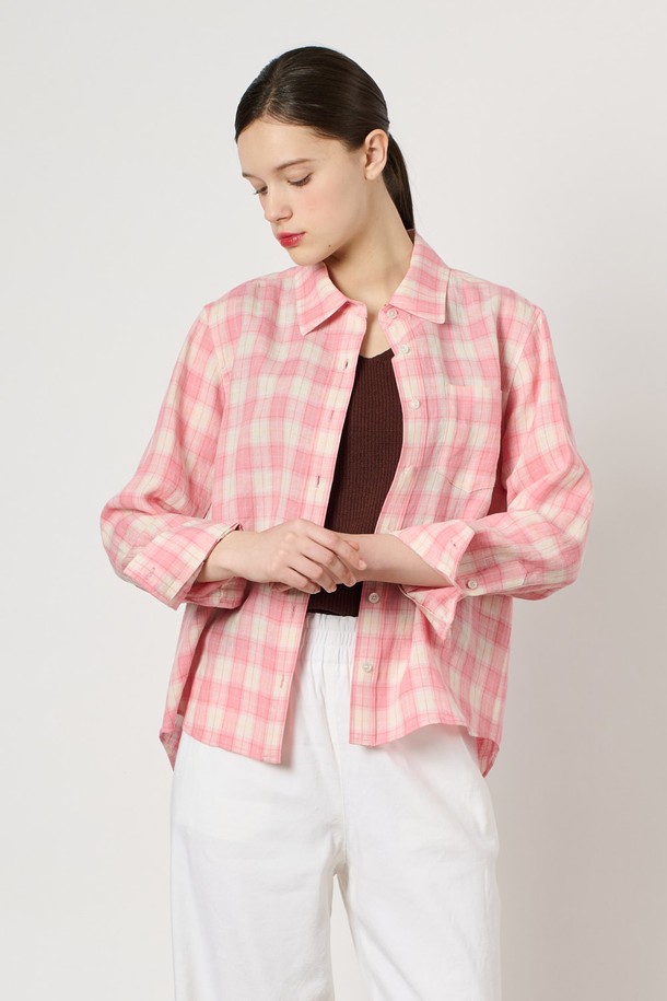 [24SU]소프트 린넨 체크 블라우스 - Light Pink B4M4B42721