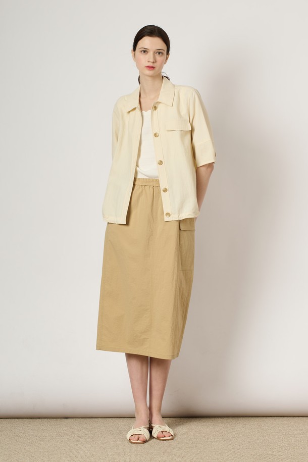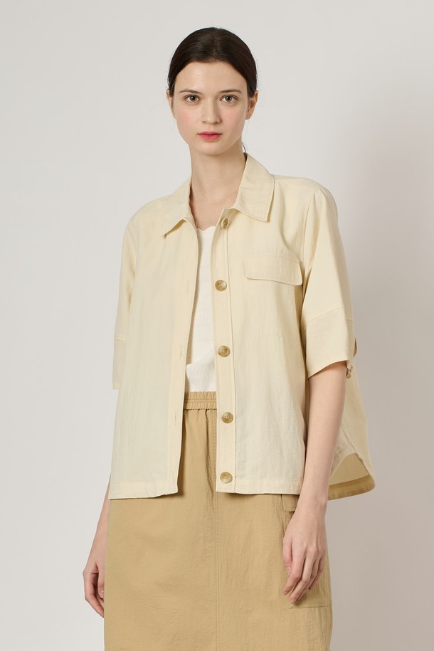 [24SU]드로우스트링 하프슬리브 셔츠 - Ivory B4M5B44313