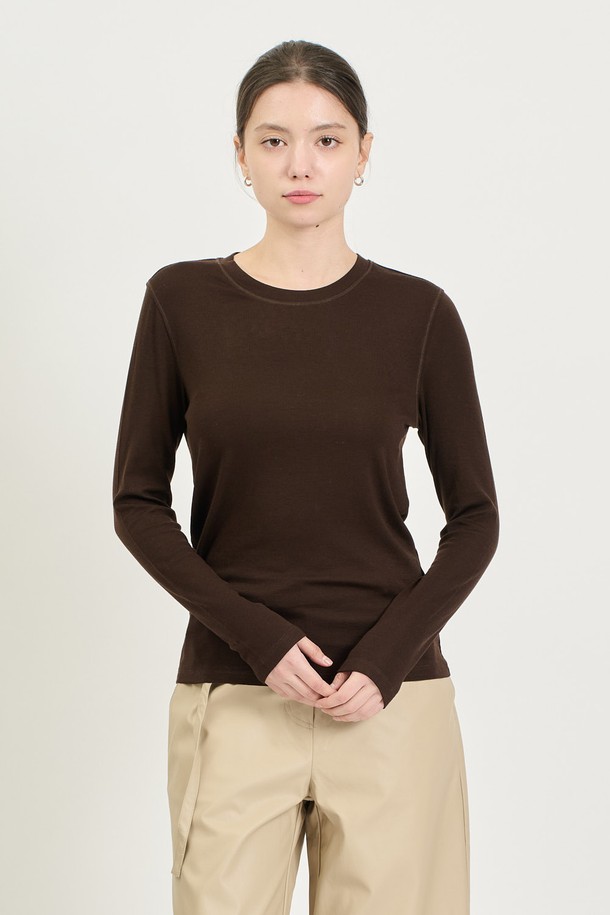 [25SP] 스트라이프 라운드넥 저지 - BROWN B5S1X40274