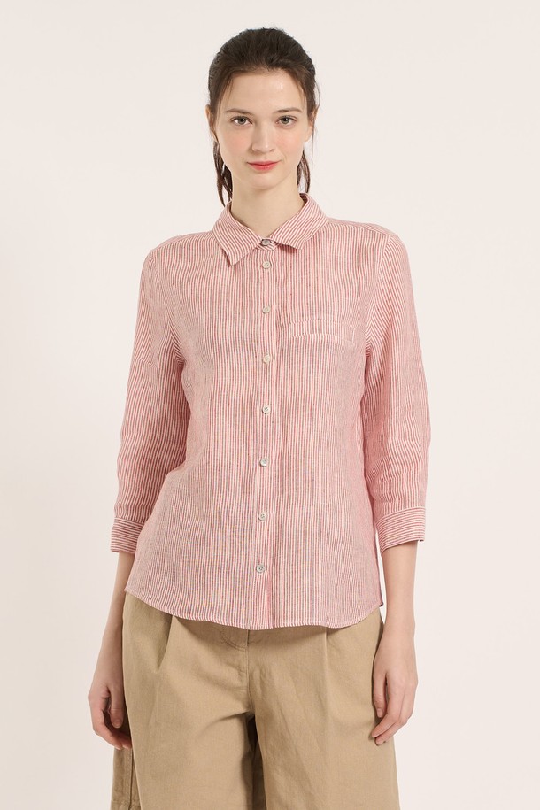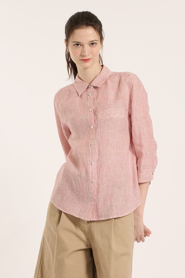 [25SM] 린넨 스트라이프 셔츠 - RED B5B3B47424