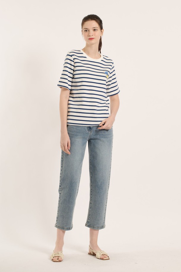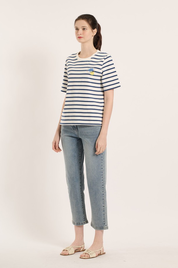 [25SM] 스트라이프 반팔 티셔츠 - M BLUE B5B3X40253