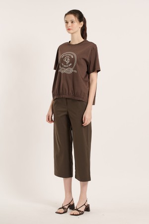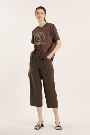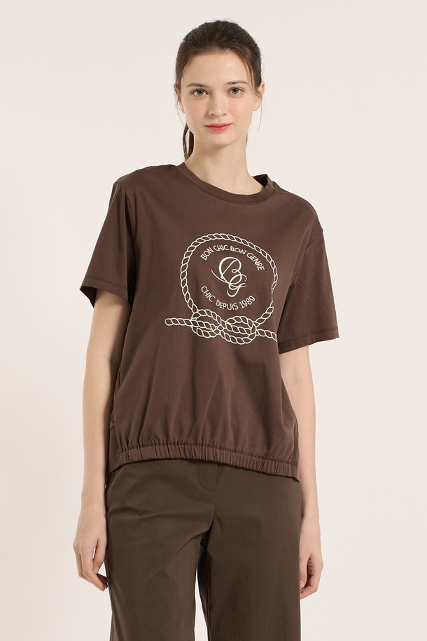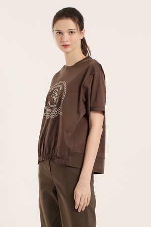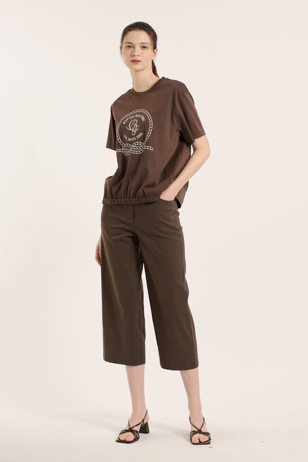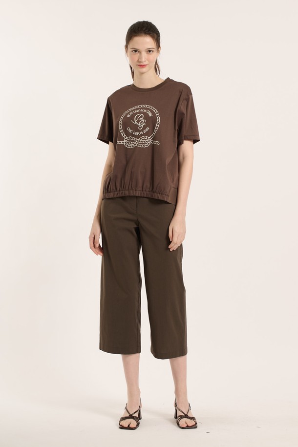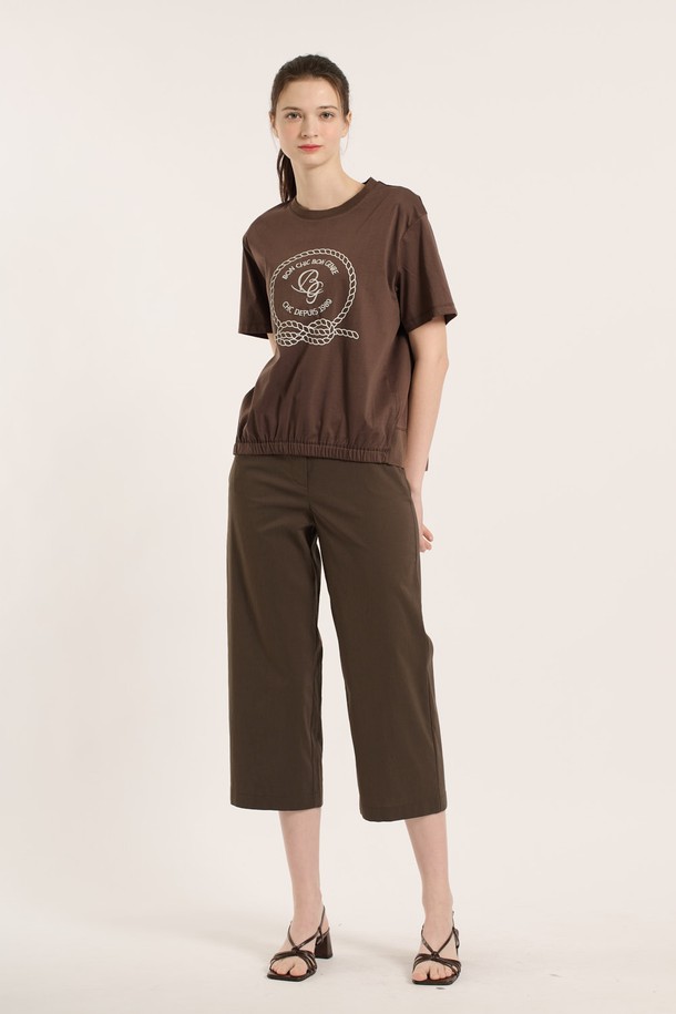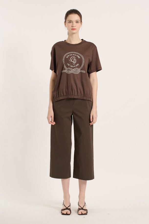 [25SU] 실켓 로프 자수 반팔 티셔츠 - BROWN B5B4X42574