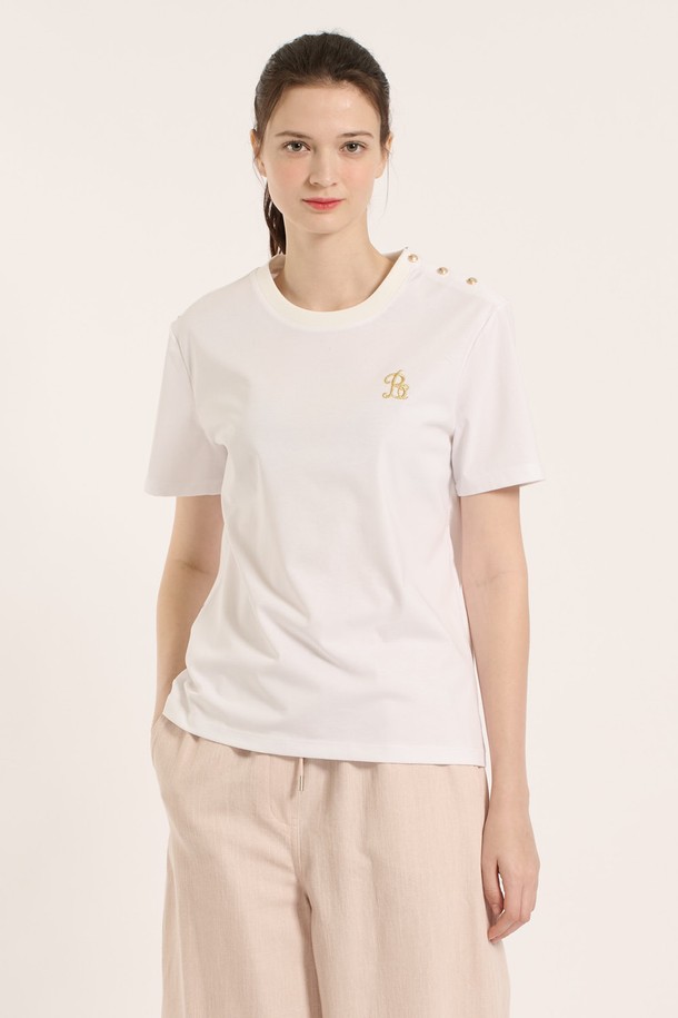 [25SU] 실켓 골드자수 반팔 티셔츠 - WHITE B5B4X42310