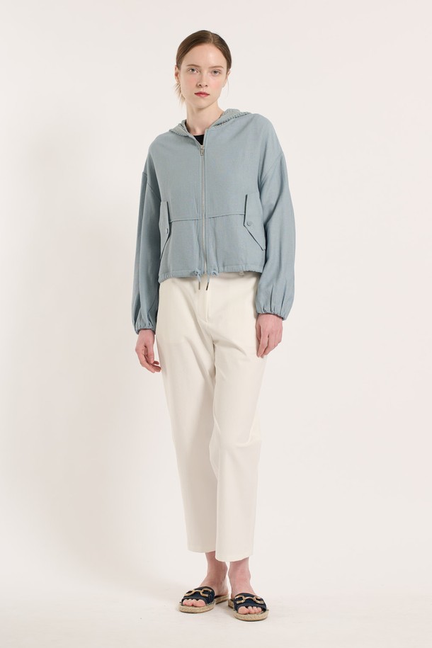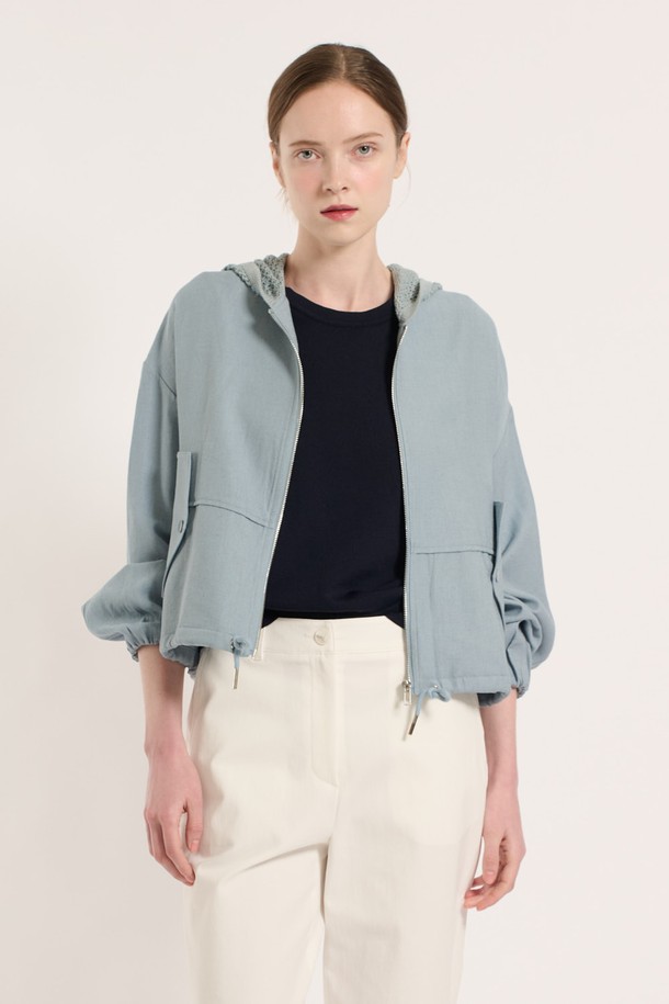 [25SU] 니트 후드 블록 집업 - SKY BLUE B5M3G17552