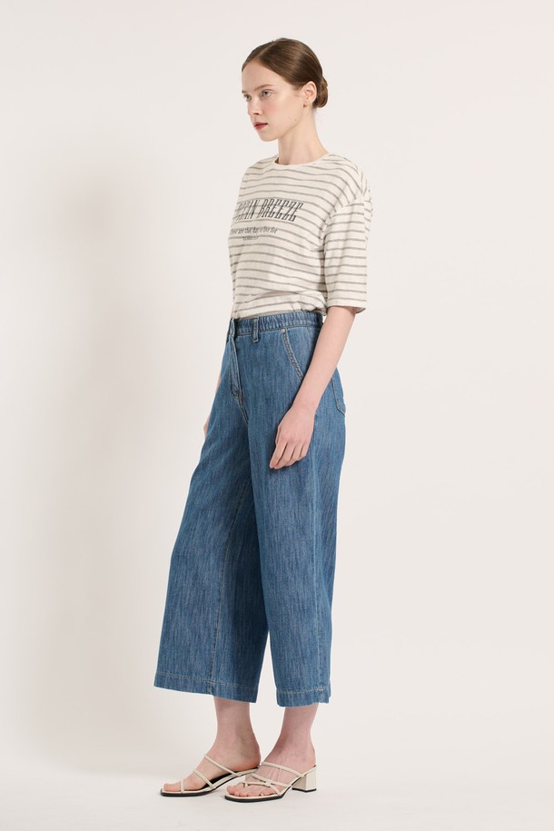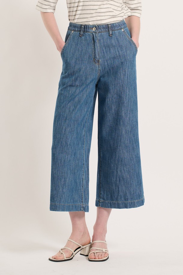 [25SU] 밴딩 와이드 데님 팬츠 - DARK BLUE B5M4P39554