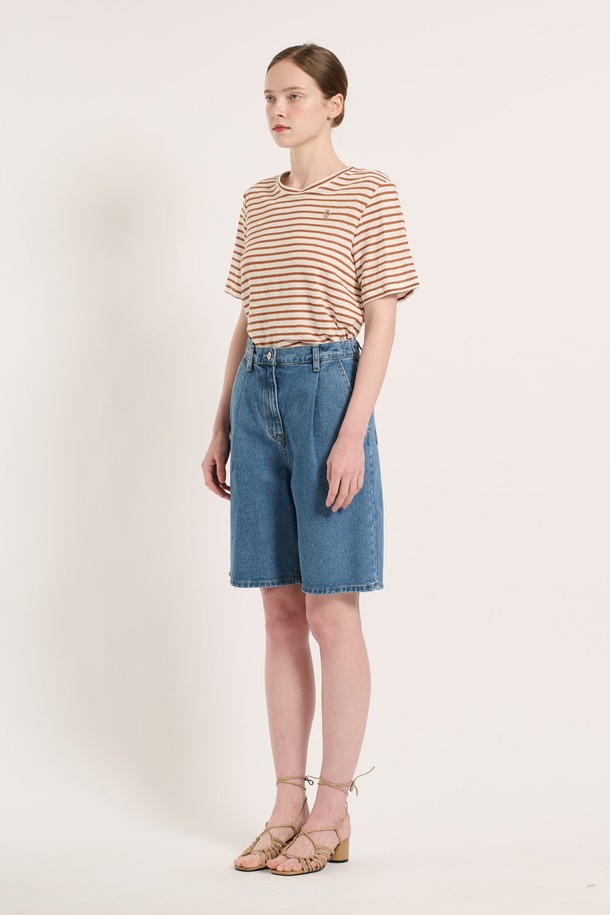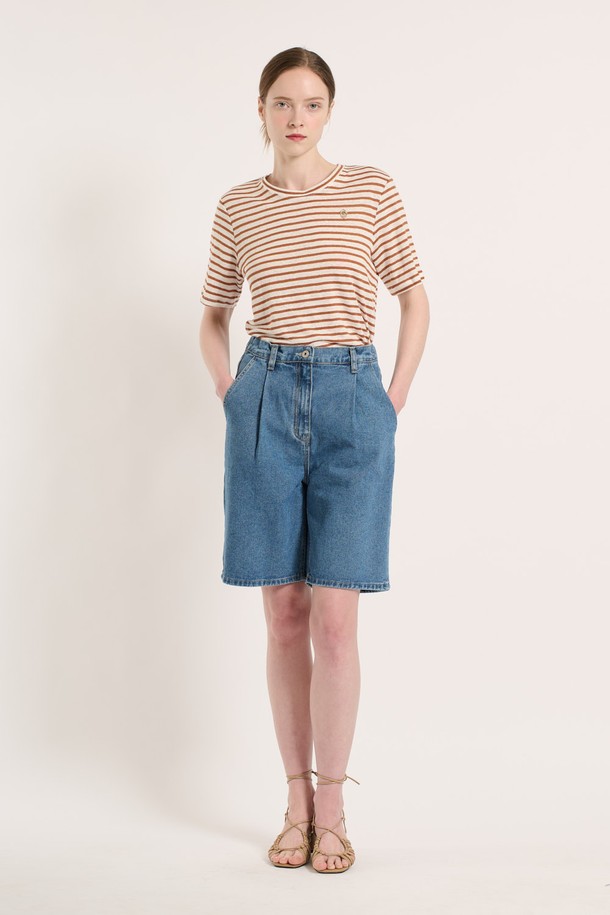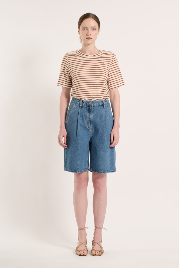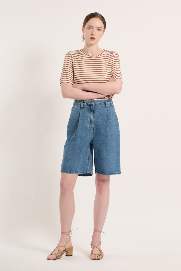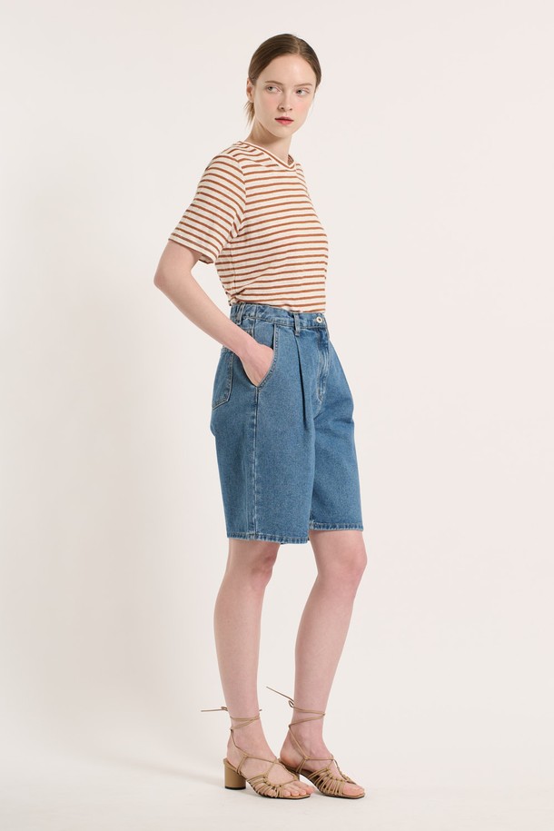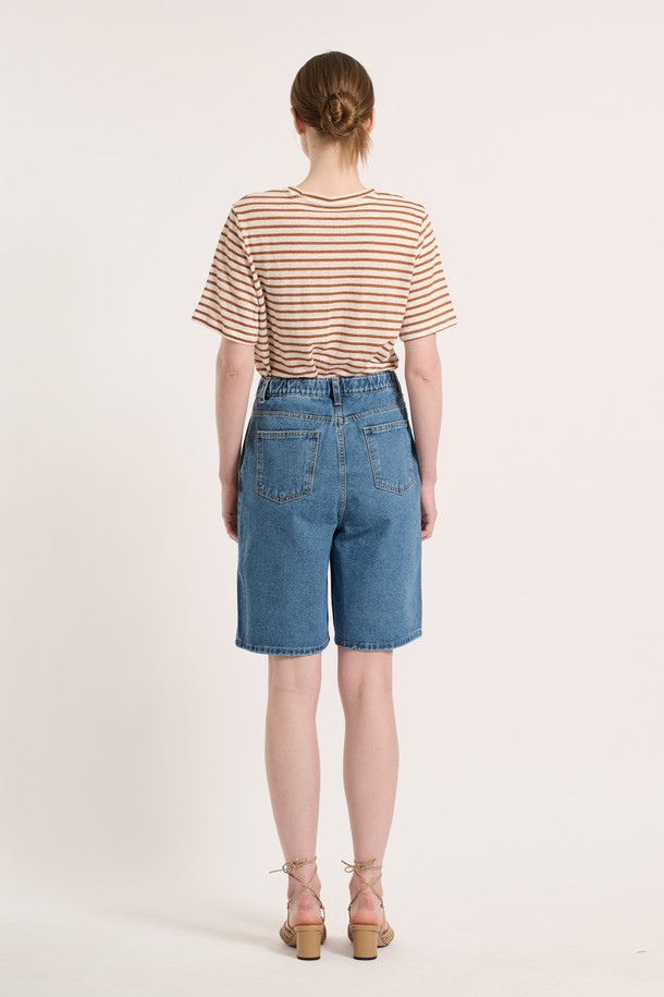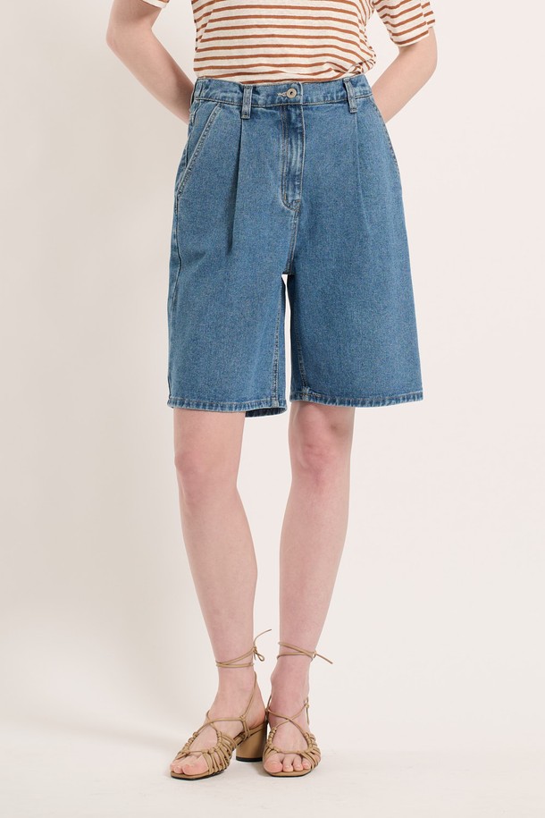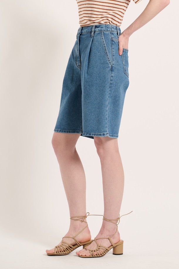 [25SU] 백밴딩 턱 하프 데님 팬츠 - LIGHT BLUE B5M4P39951