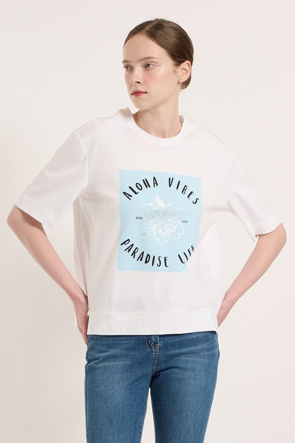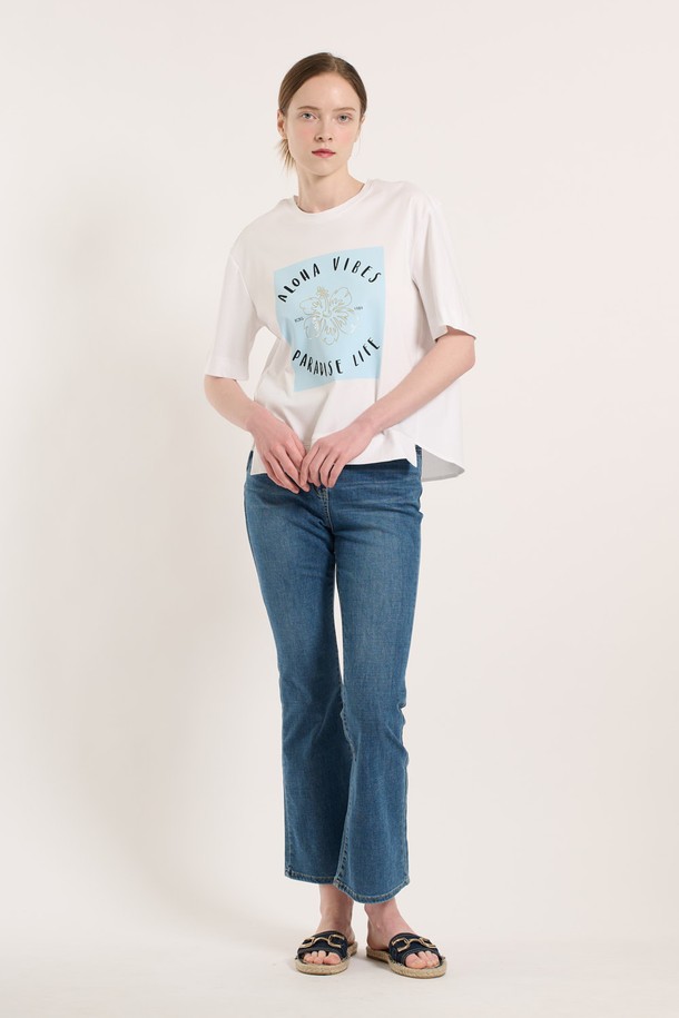 [25SU] 알로하 프린팅 티셔츠 - PEARL WHITE B5M4X48008