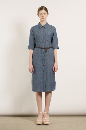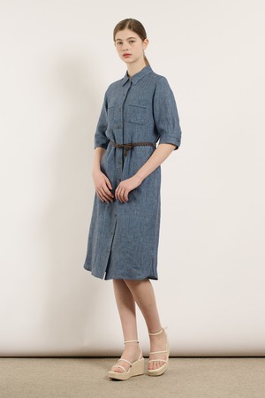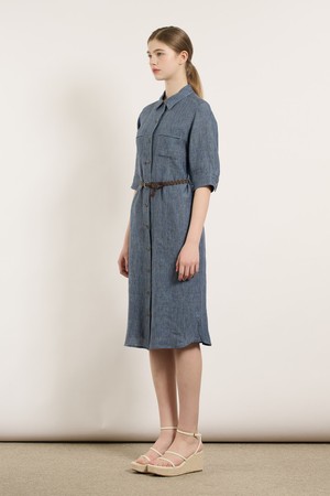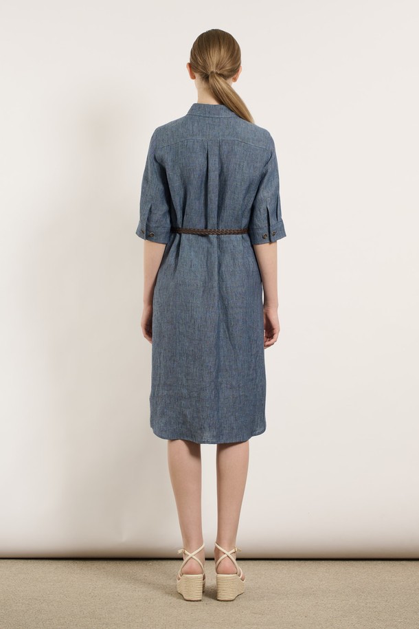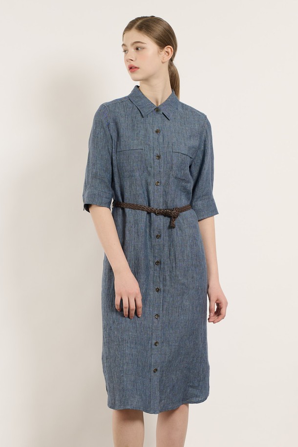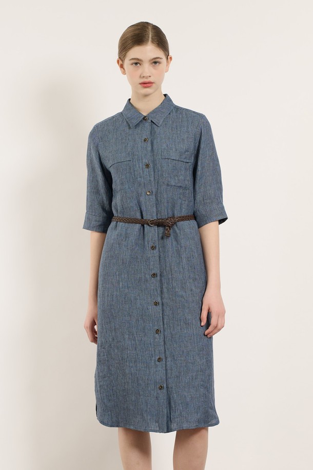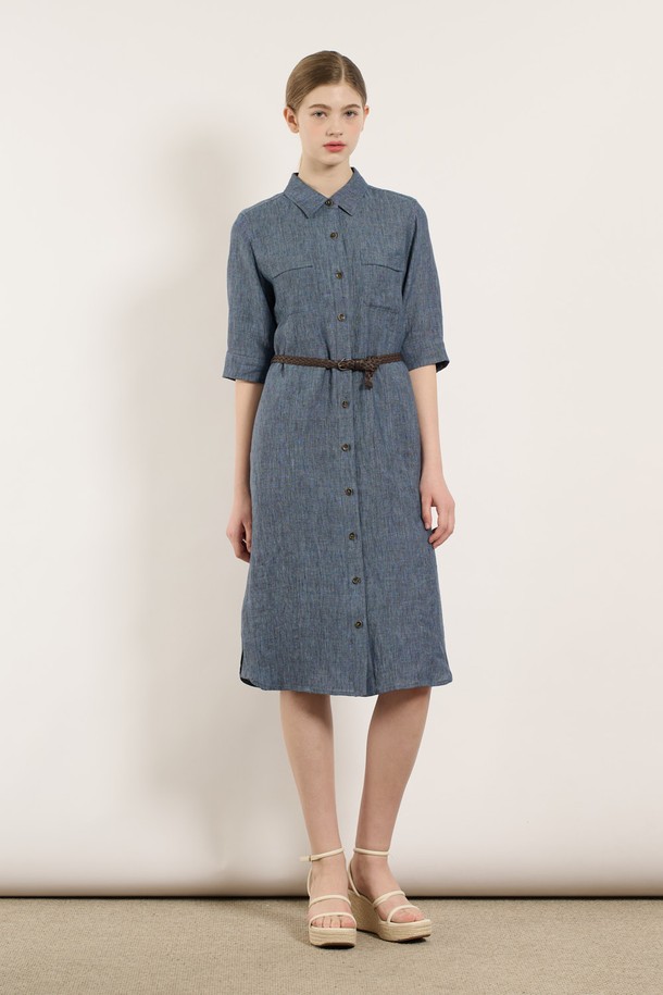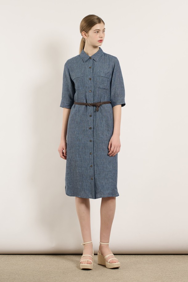 [25SU] 포켓패치 린넨 라인 원피스 - DARK BLUE B5M4O62354