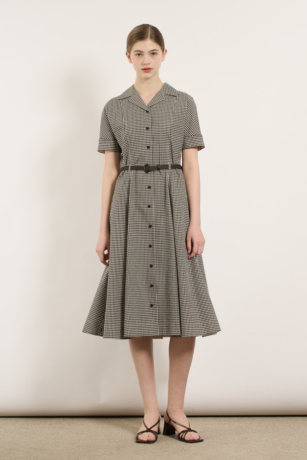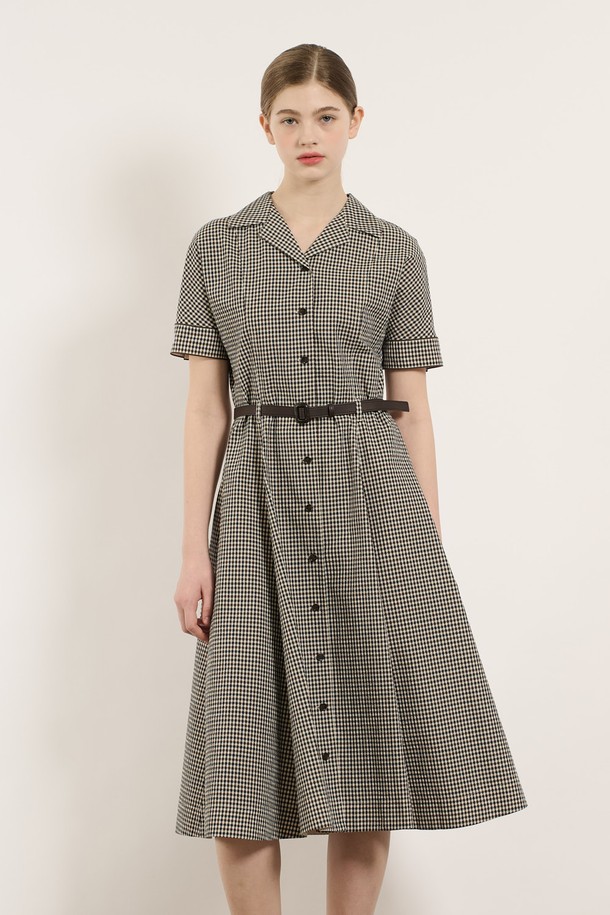 [25SU] 타이니 체크 벨티드 원피스 - BROWN B5M5O64774