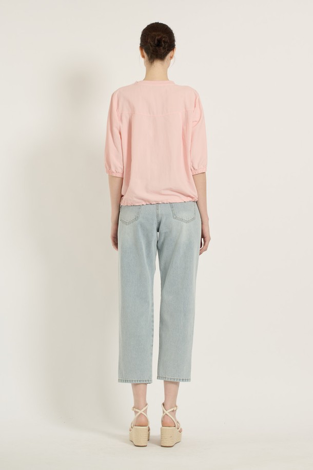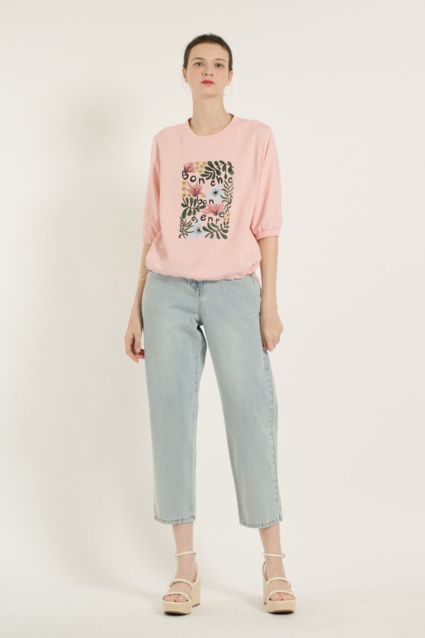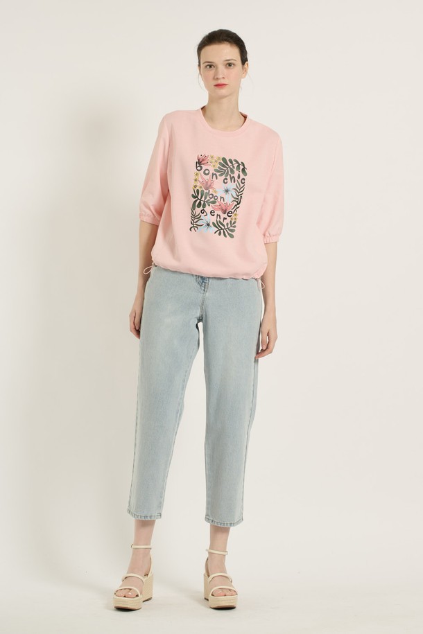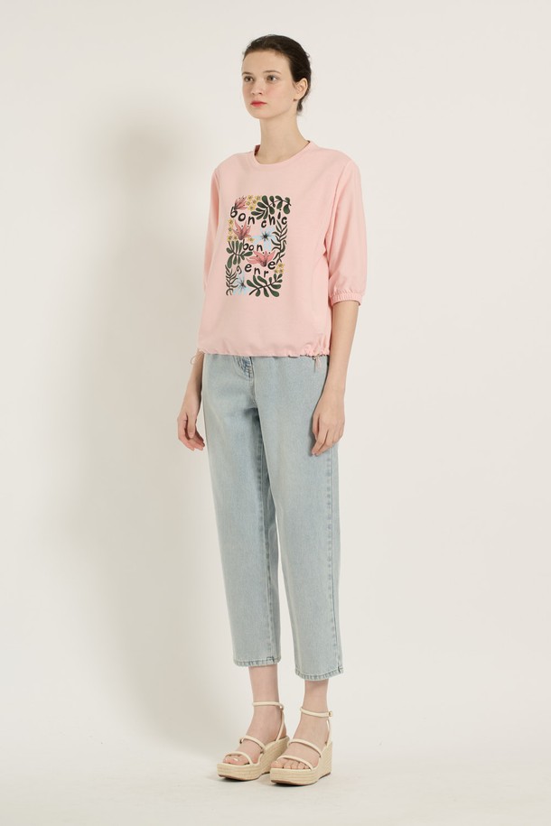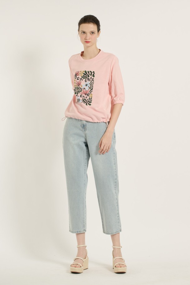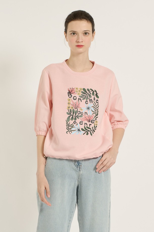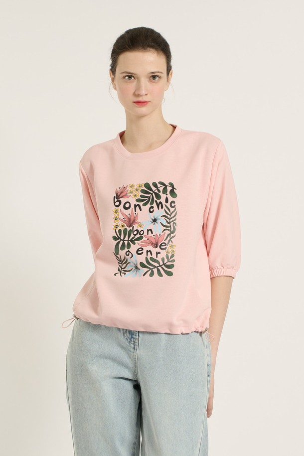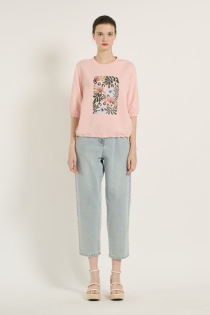 [25SU] 우븐배색 프린트 티셔츠 - LIGHT PINK B5B4G47621