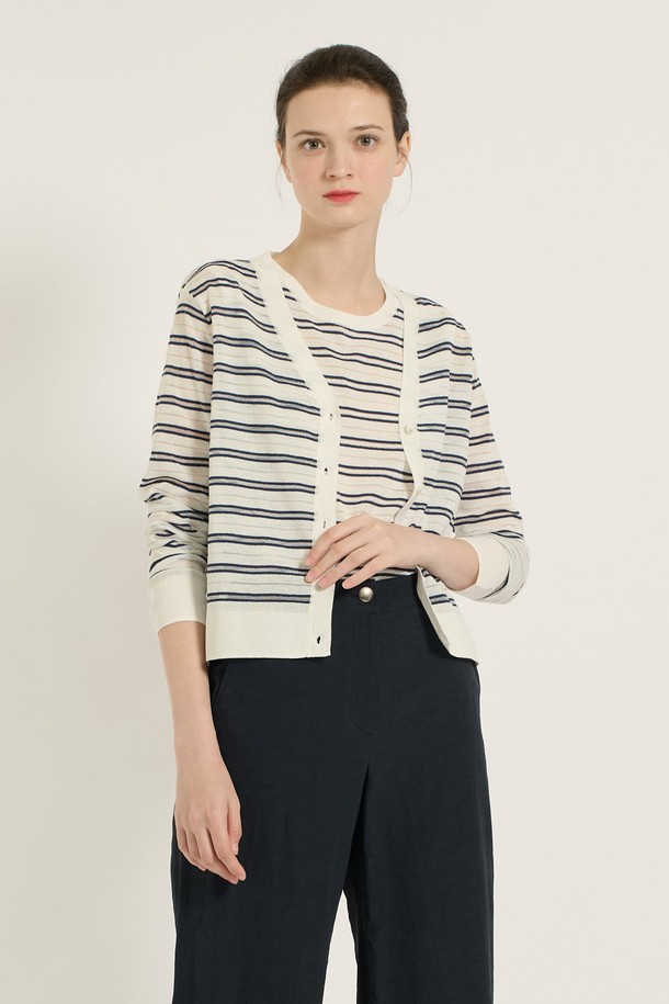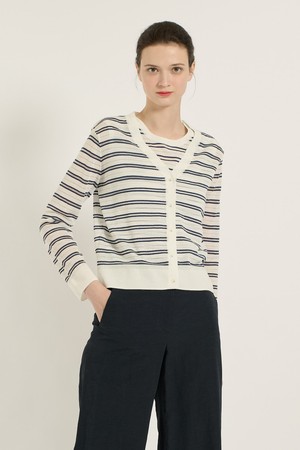 [25SU] 스트라이프 브이넥 가디건 - NAVY B5B4K21555