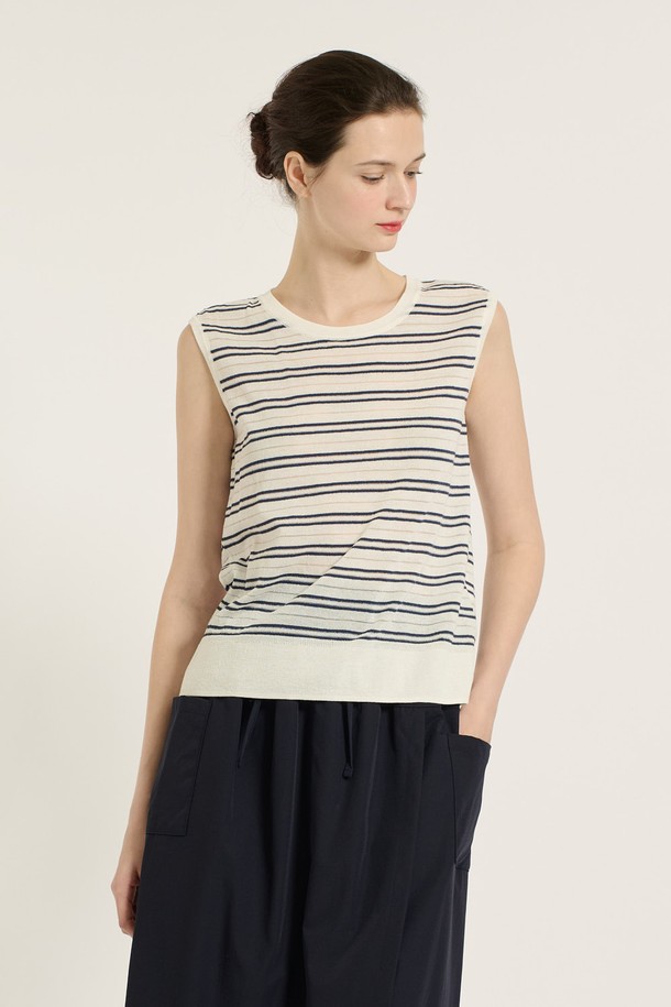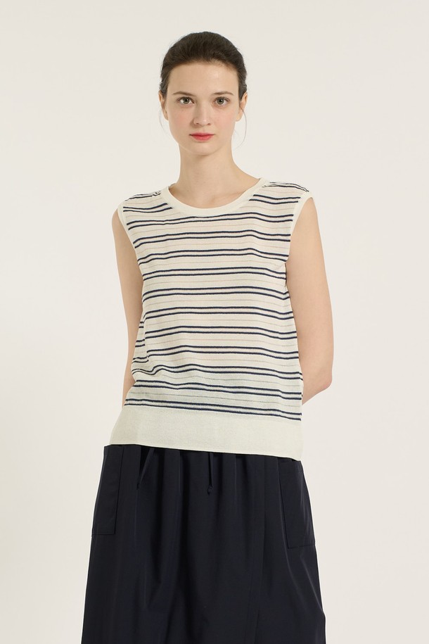 [25SU] 스트라이프 슬리브리스 - NAVY B5B4K31555