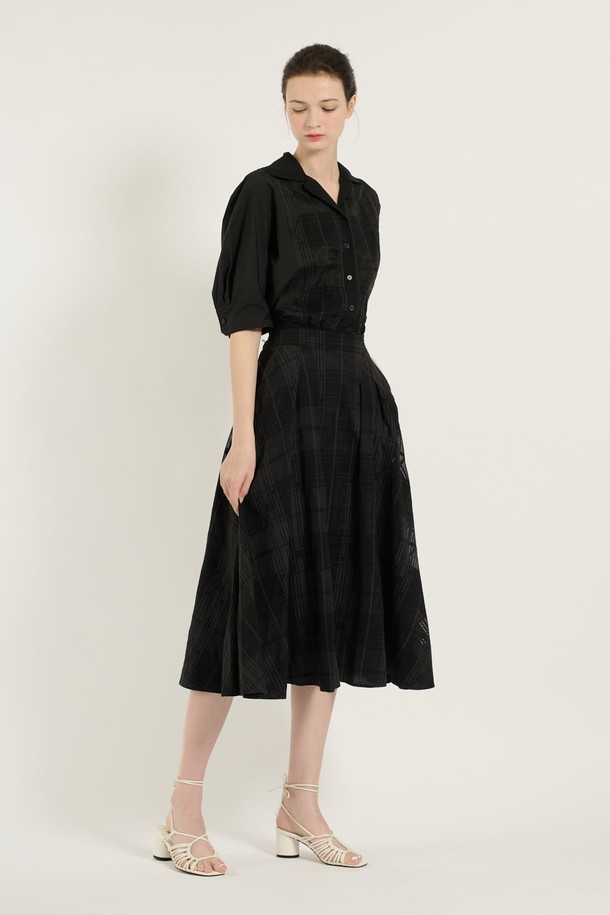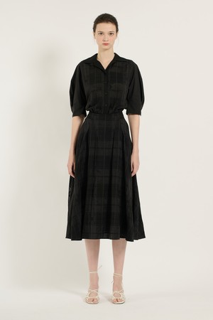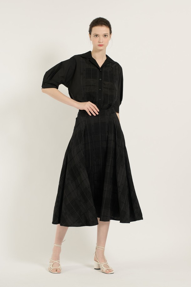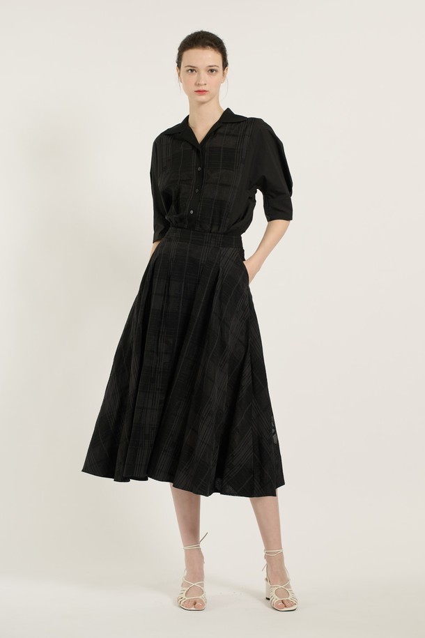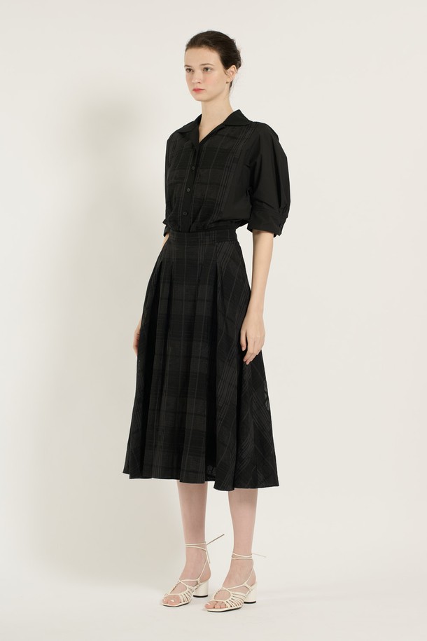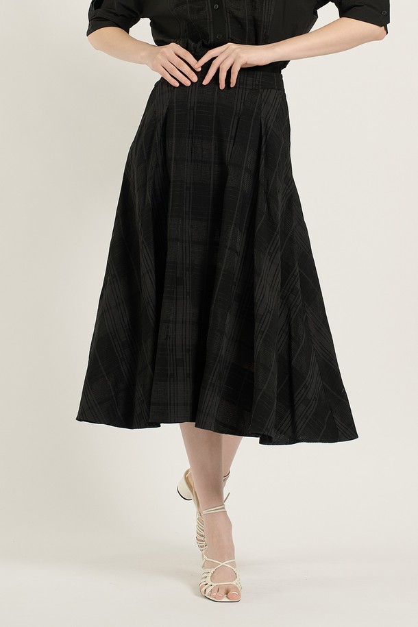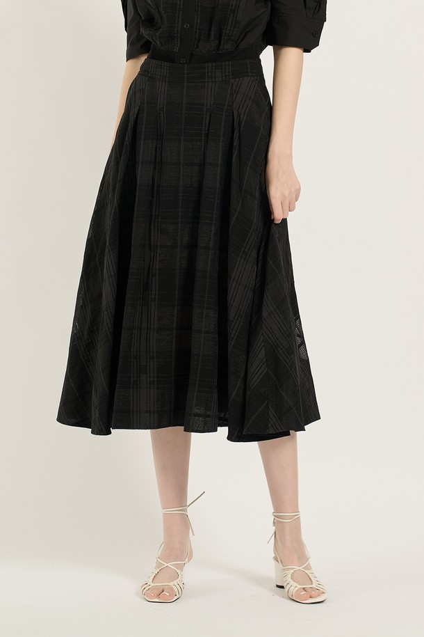 [25SU] 체크 플레어 턱스커트 - BLACK B5B4S22999