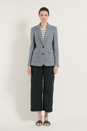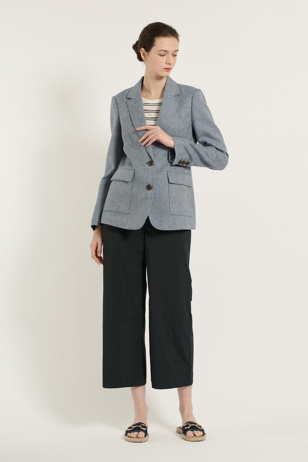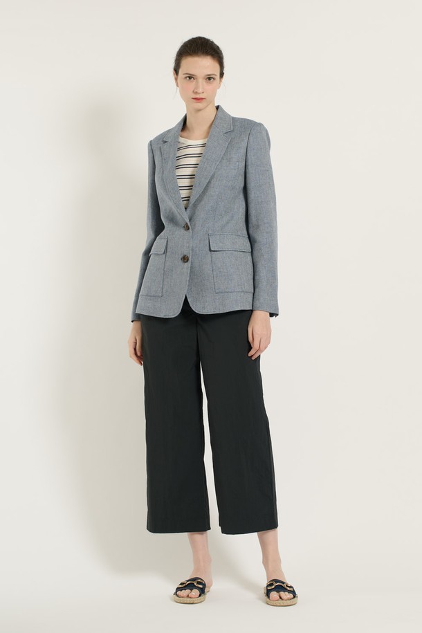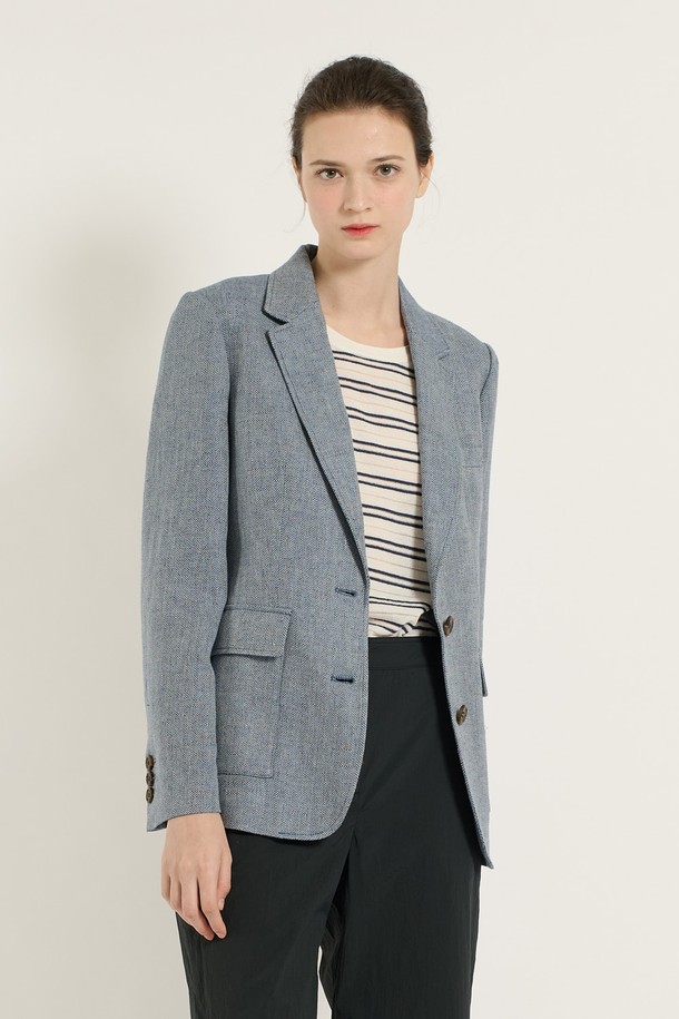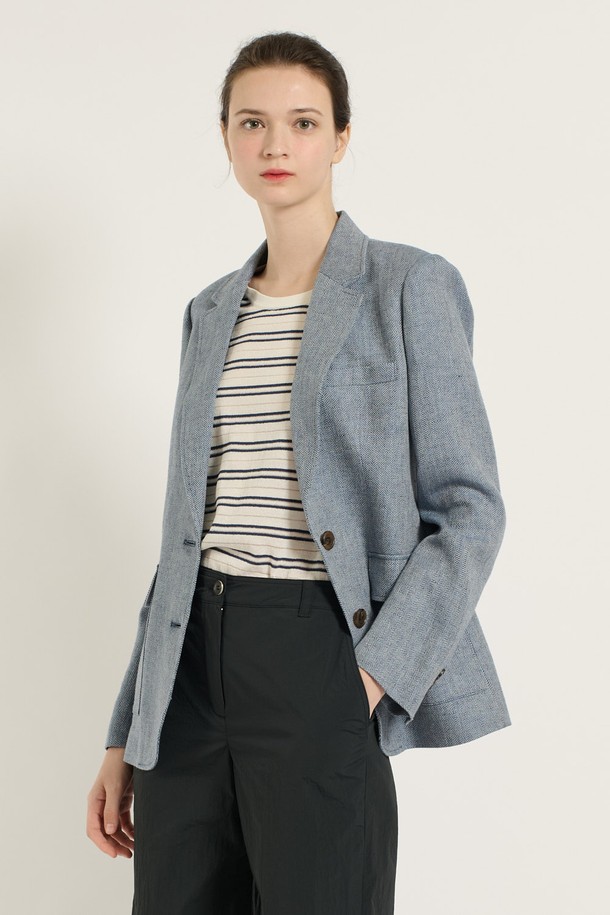 [25SU] 투버튼 헤링본린넨 재킷 - M BLUE B5B3J10253