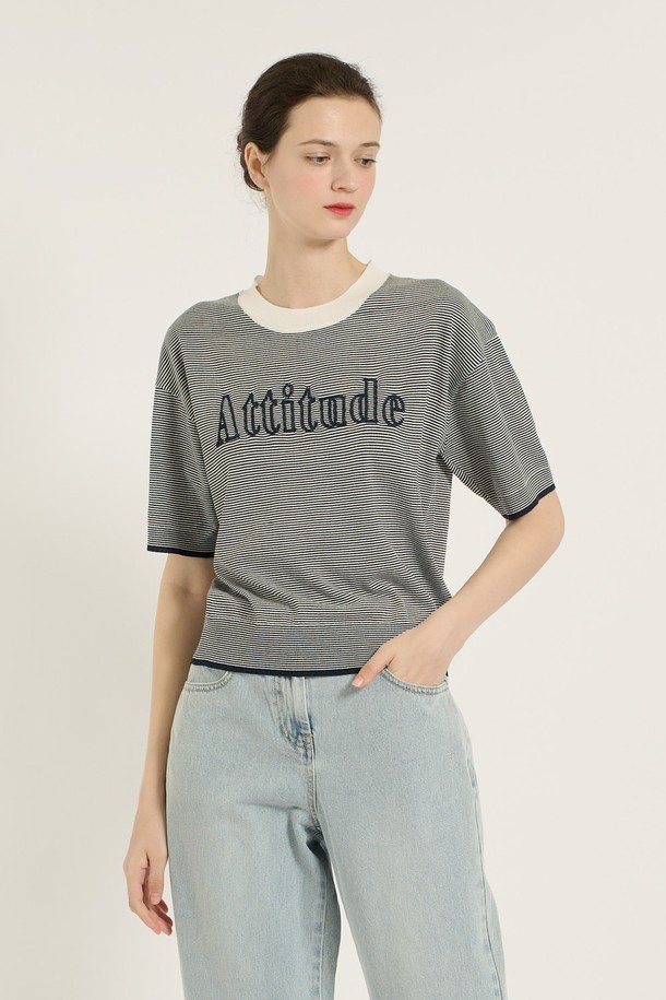 [25SU] 에티튜드 자수 니트 - NAVY B5B4G47255