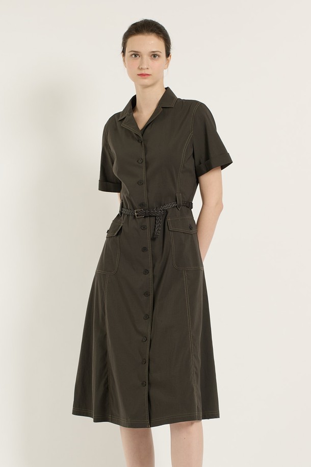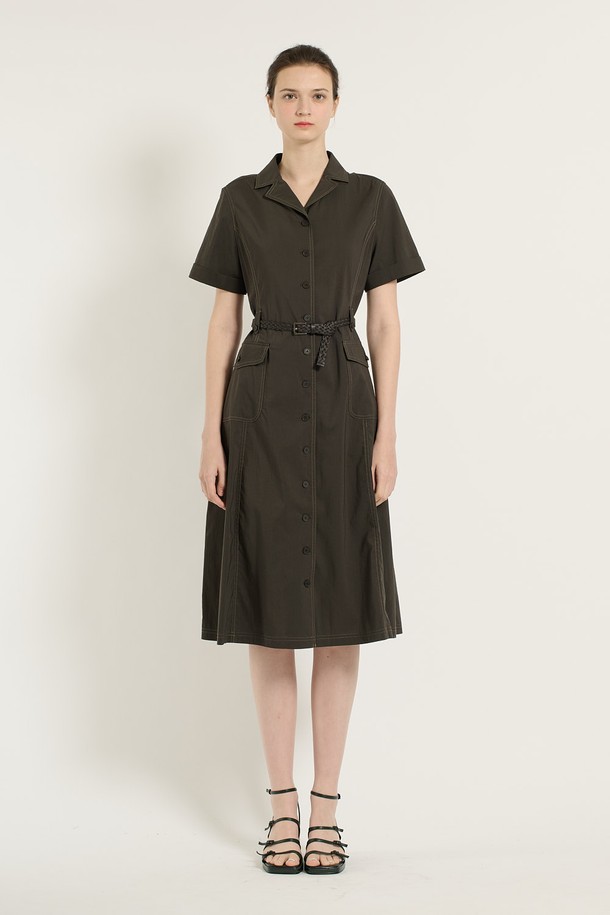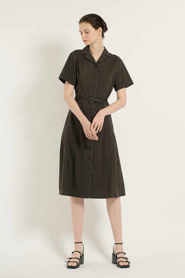 [25SU] 린넨 오픈카라 원피스 - DARK BROWN B5B4O62875