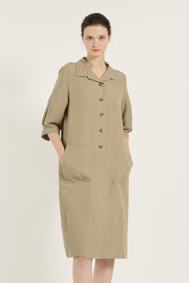 [25SU] 오픈카라 코쿤원피스 - LIGHT KHAKI B5B4O68481