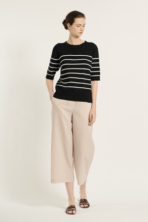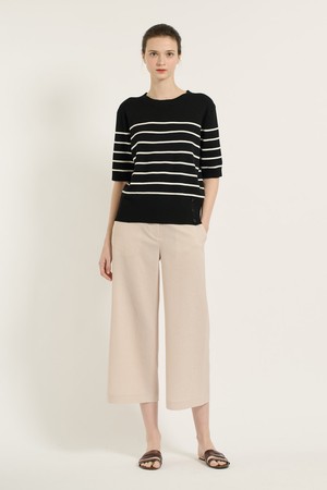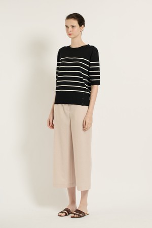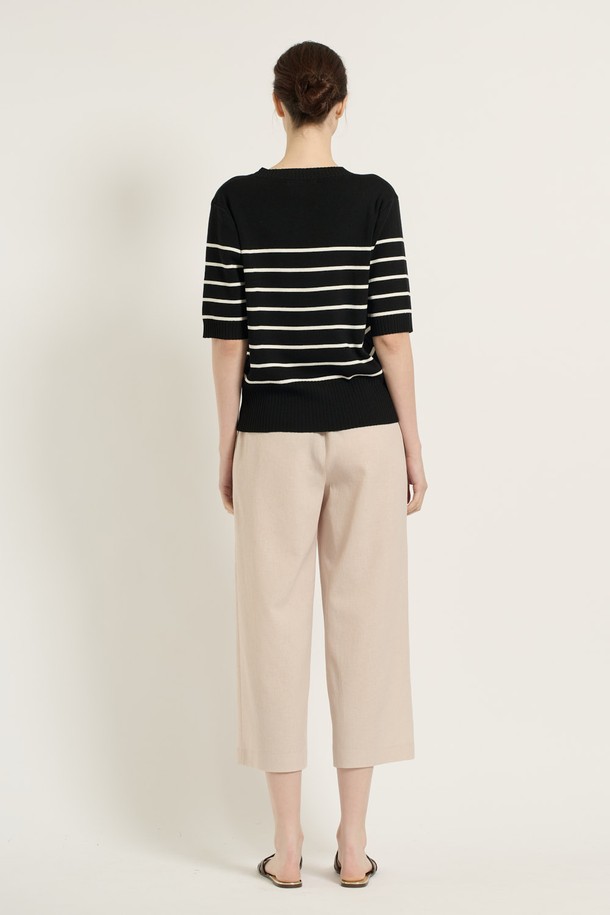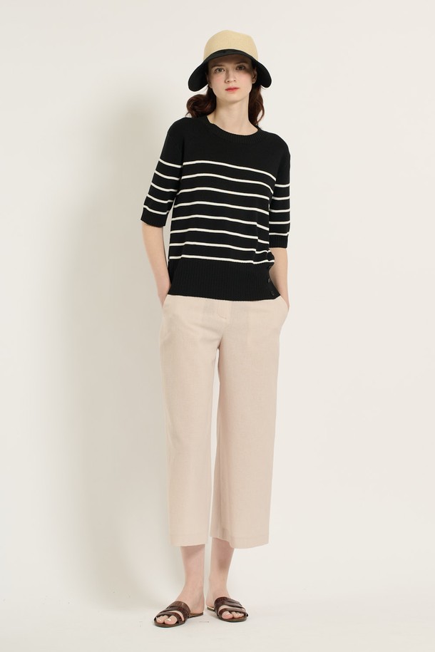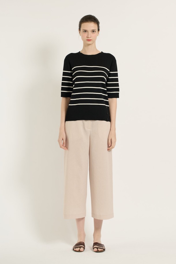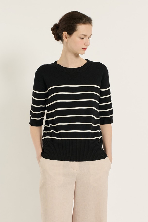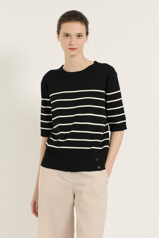 [25SU] 스트라이프 단추 포인트 니트 - BLACK B5B4I28199