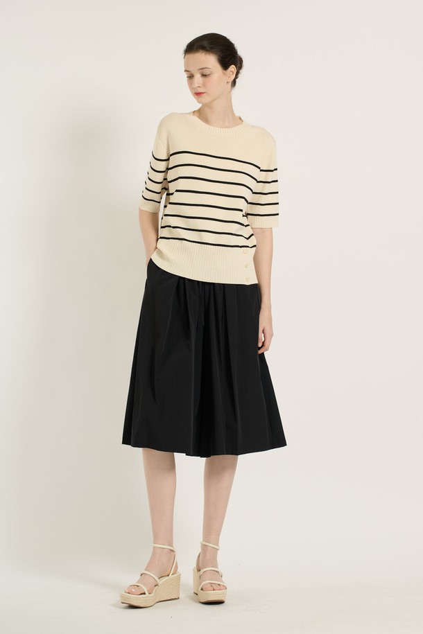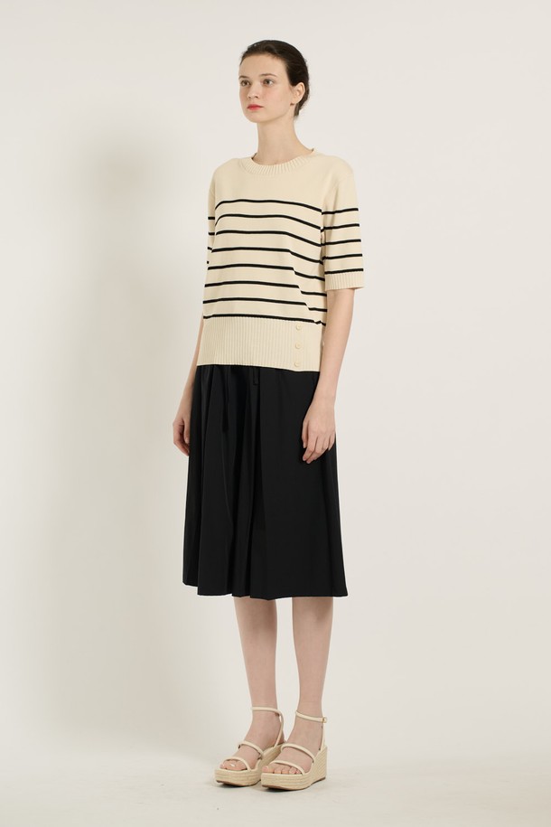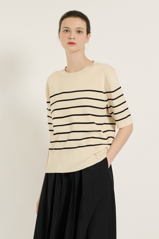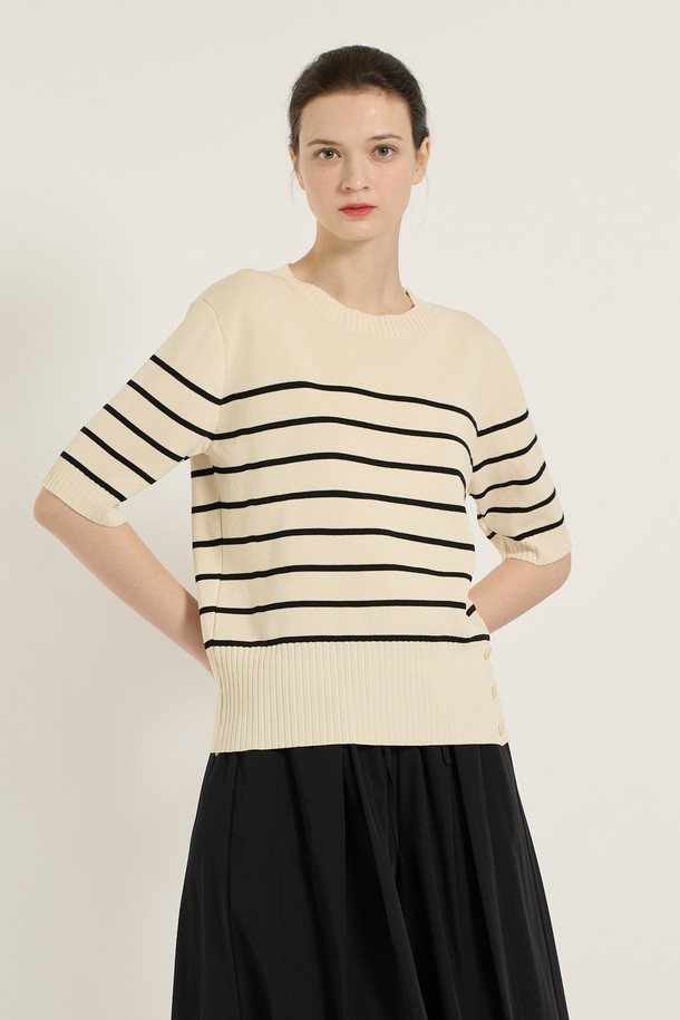 [25SU] 스트라이프 단추 포인트 니트 - IVORY B5B4I28113