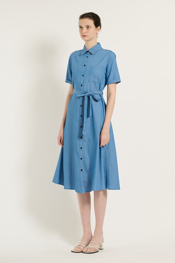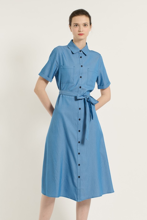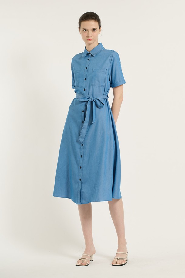 [25SU] 벨티드 데님 원피스 - M BLUE B5B5I68253