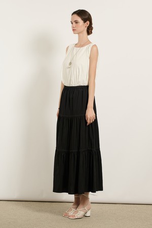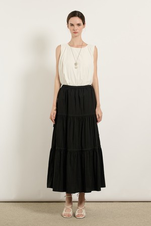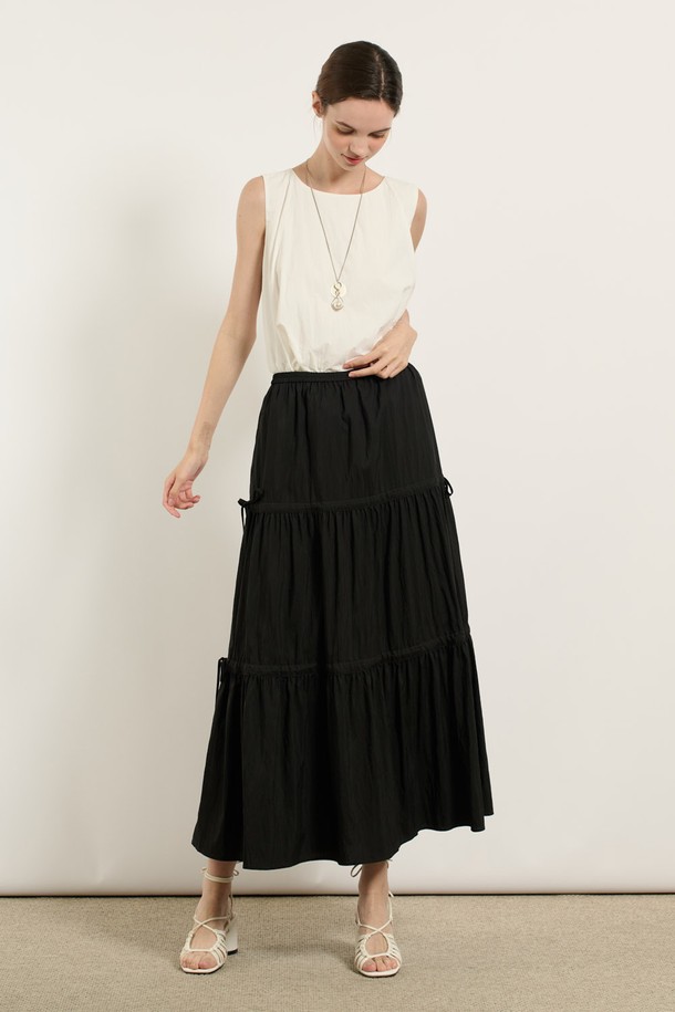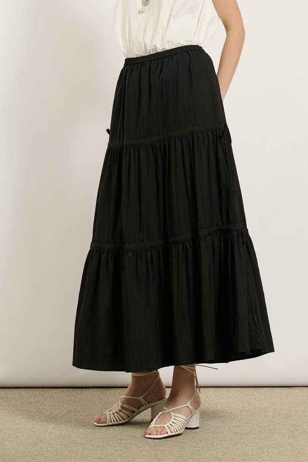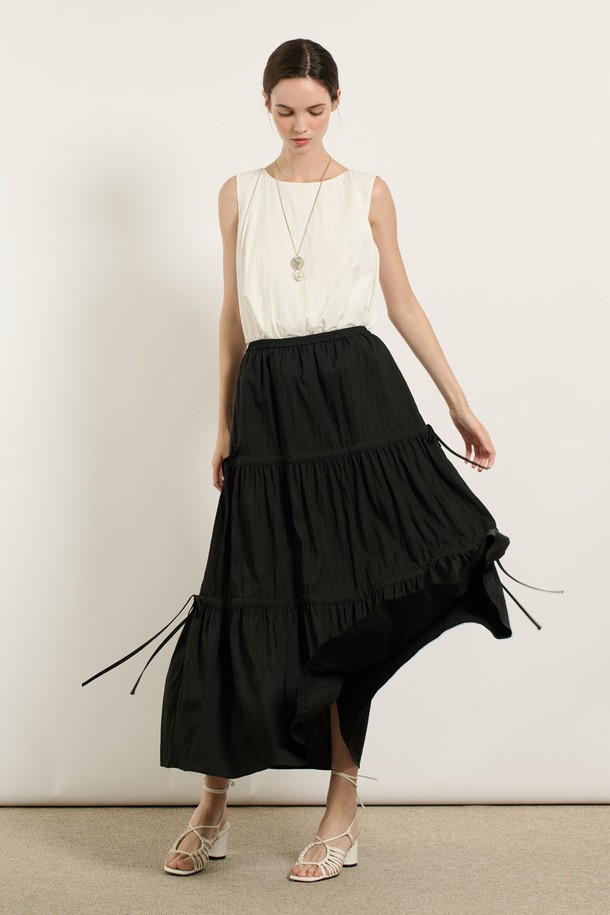[25SU] 셔링 롱 스커트 - BLACK B5M5S24199