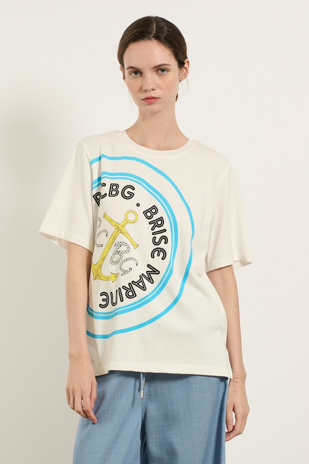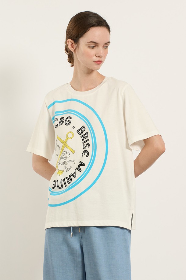 [25SU] 마린 로고 프린트 티셔츠 - WHITE B5M5X44210