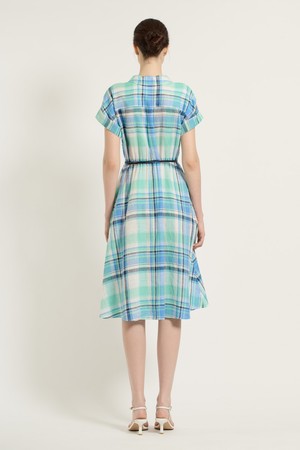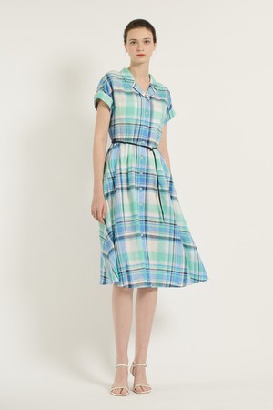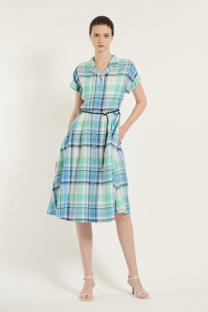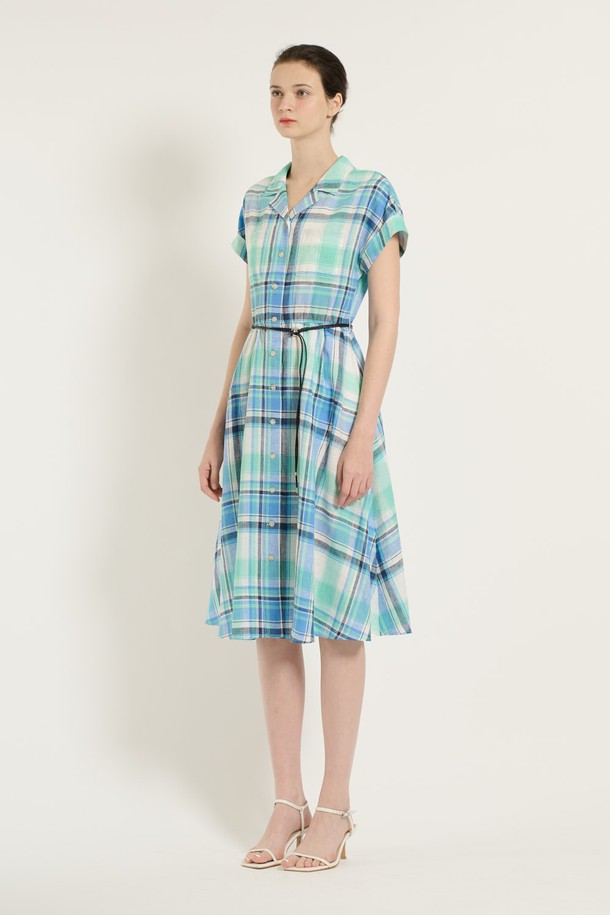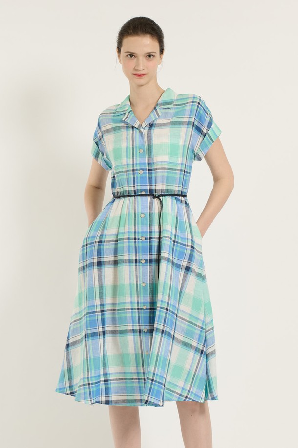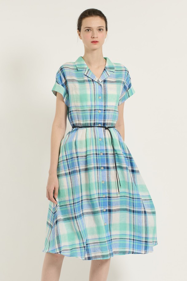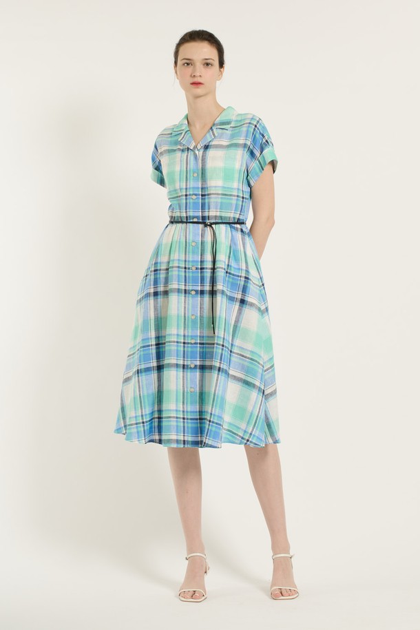[25SU] 체크 벨티드 원피스 - MARINE BLUE B5B5O64150