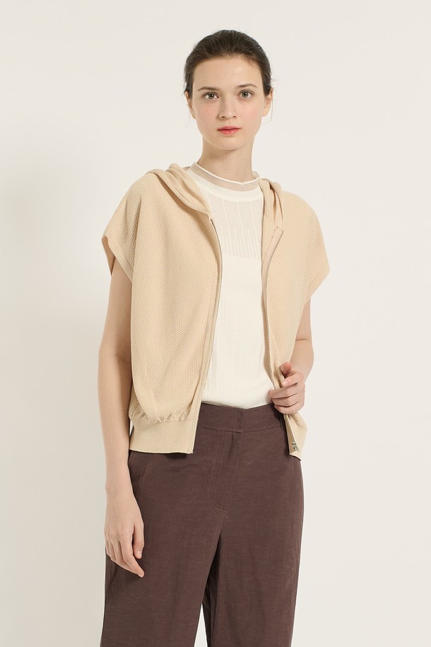 [25SU] 니트 후드 베스트 집업 - LIGHT BEIGE B5B6G29271